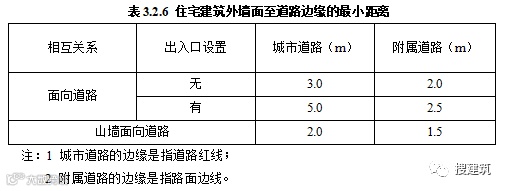 3.2.6 住宅建筑高度大于10m时,外墙面至道路边缘的最小距离,应符合表3.2.6的规定。