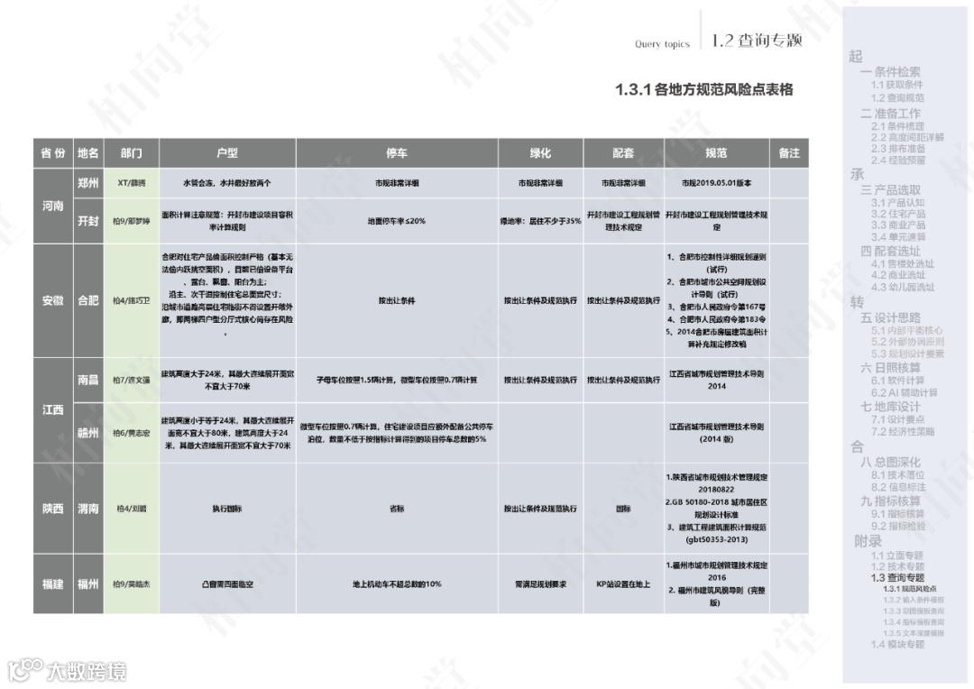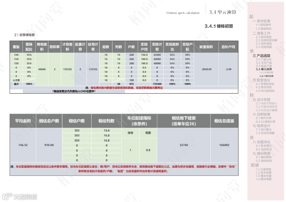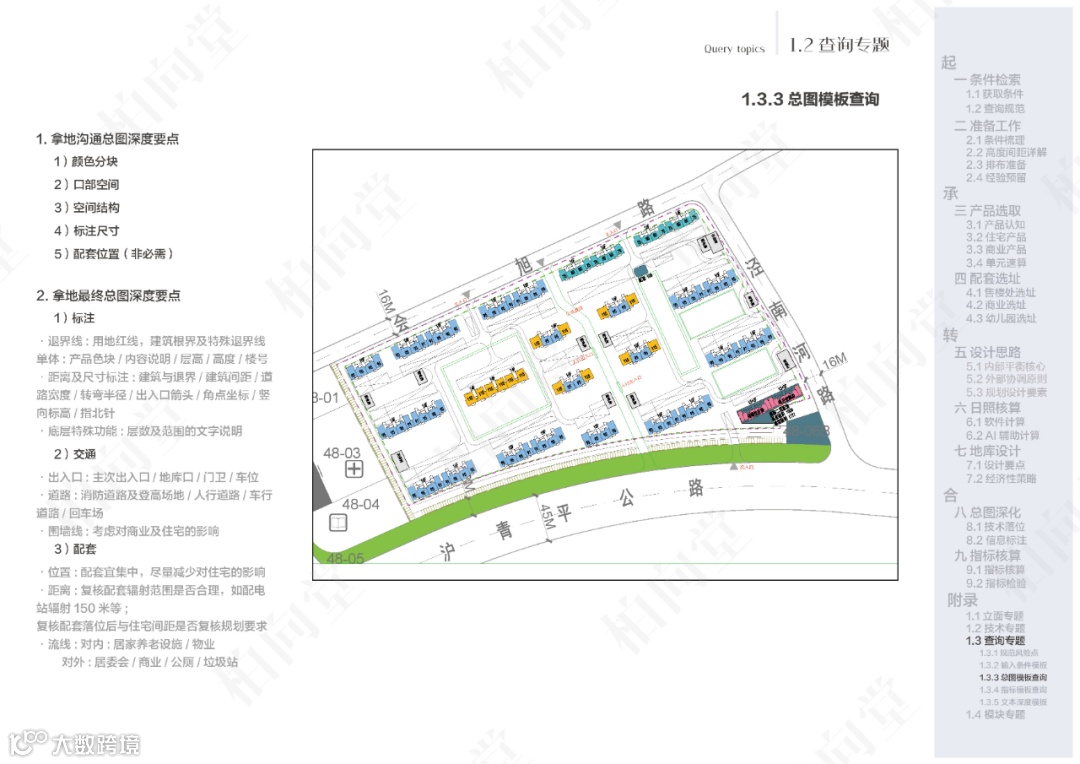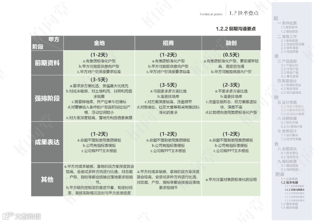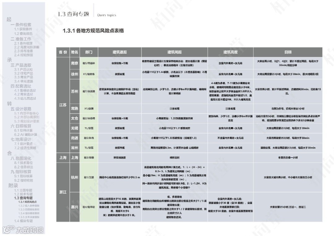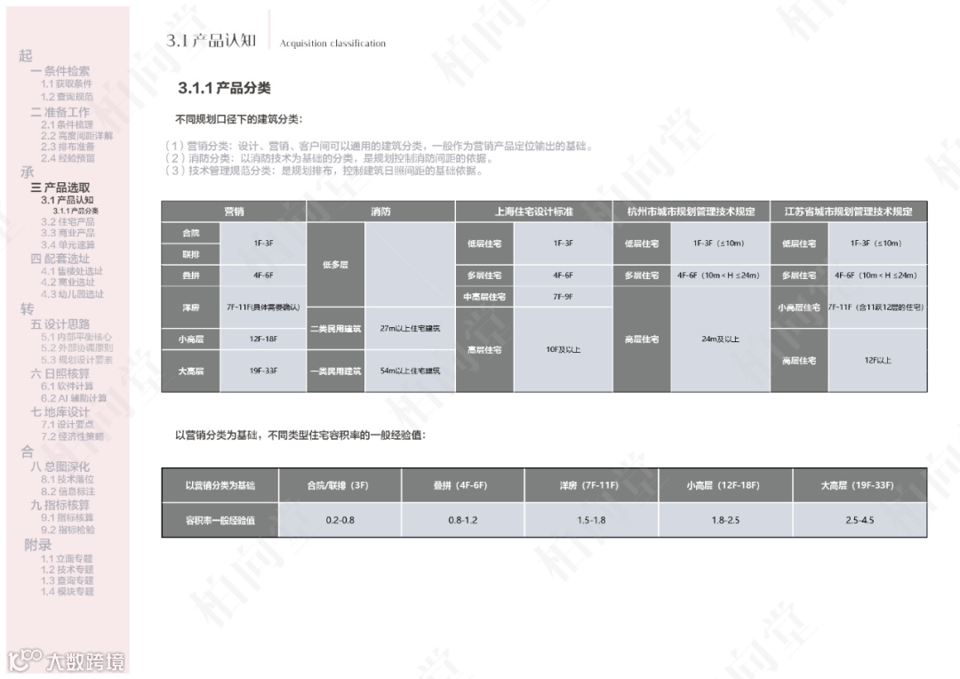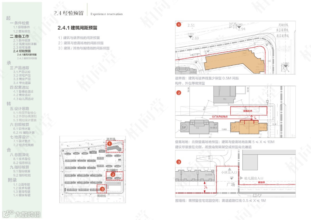 本册从设计流程、规范梳理、强排思路、设计策略、日照技巧、地库方案、总图技术、出图标准、落地对比、分项模块,这十个方面展开,更为系统的研究拿地涉及的一系列事项及问题。通过从实际案例和拿地经验层层论述,形成拿地方法论的同时,还完善了检索机制,为开发商、设计者提供了更为高效全面、精准落地、极致经济、模块完备的拿地指导手册。
