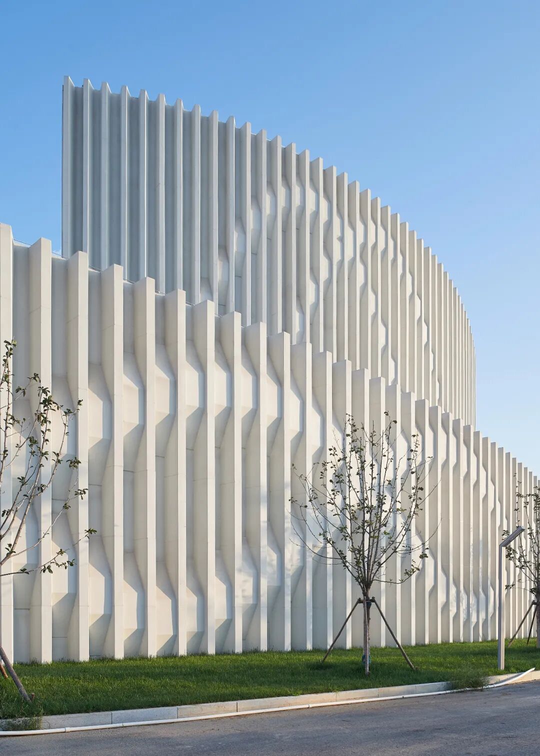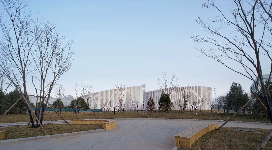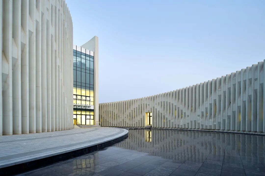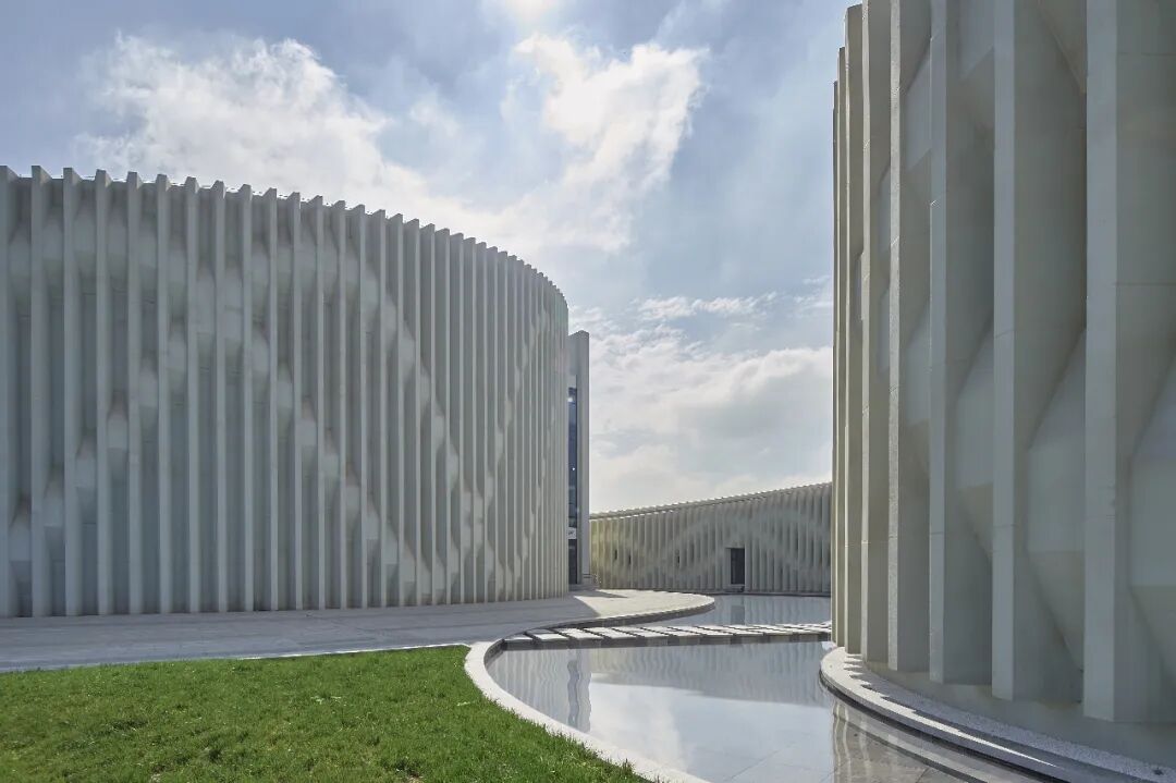 山东第一医科大学医学博物馆呈现一种简单、静谧,形式内向而又富有活力和动感的建筑意向。它欢迎人们进入、感受生命的神奇。高低起伏、螺旋向上的层次感带来丰富的空间感受,同时这种向上的状态似乎在传达生命积极向上的姿态、讲述生命的力量。同时,曲线的建筑姿态呈现一种柔美的空间形态,与螺旋向上的建筑立面相结合。我们希望传达的是生命的柔与刚、静与动、矛盾与和谐。