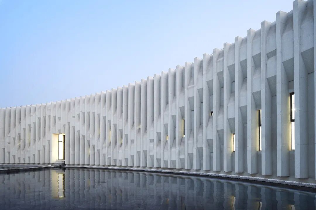 水面由建筑主体部分蜿蜒流出, 犹如生命静静地流淌,为来访者营造一个驻足停留、放松冥想的公共休憩空间。建筑与水景结合,将一股轻盈的流动感与鲜活的生命力注入建筑空间。生命如此简单,如此纯洁,在这幅静谧的画面里,又似乎有一股源源的生命力量正在无声地生长。在这里,静谧内敛的空间成为视觉焦点和精神所在,用建筑空间表达生命的诗意,人们在这里休憩、漫步、交流,怡然自得。