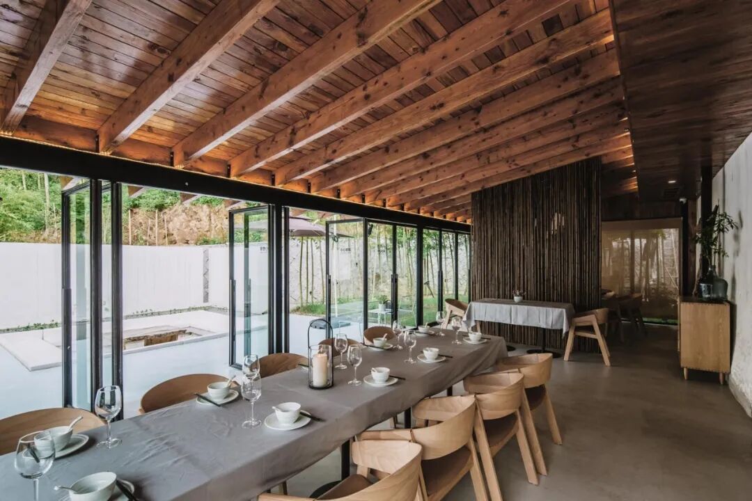 尚能使用的老宅经过修缮得以保留,除了必要的加固与开窗,并没有刻意地抹去一些略显粗糙的“乡土气”;新的体量如林子里的竹笋,在已损毁的房屋上破土而出。新老建筑在保有原始肌理的情况下自然更迭,产生一些新的空间,也留下一点生长的痕迹。
