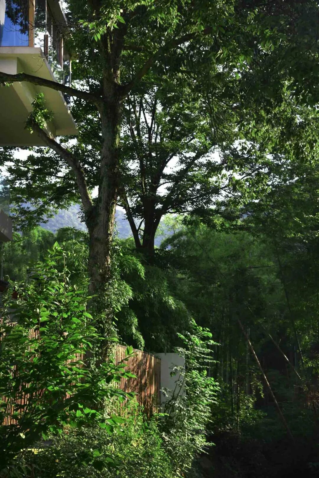面向山林的另一侧,建筑突然变得张扬。13间不同格局的客房在竹海中肆意生长,寻找最佳的景观视野。