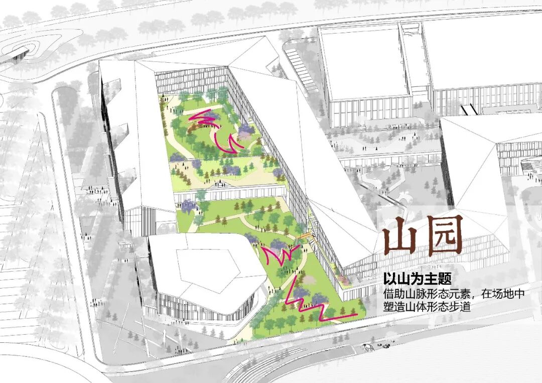 利用建筑形体形成的各个围合和半围合的空间,设计团队设置了丰富多样的外部活动空间,将“层层叠园、移步换景”的江南园林融入到校园环境之中,在理工氛围里增添了适宜的人文环境,营造人性化的研究和生活中心。