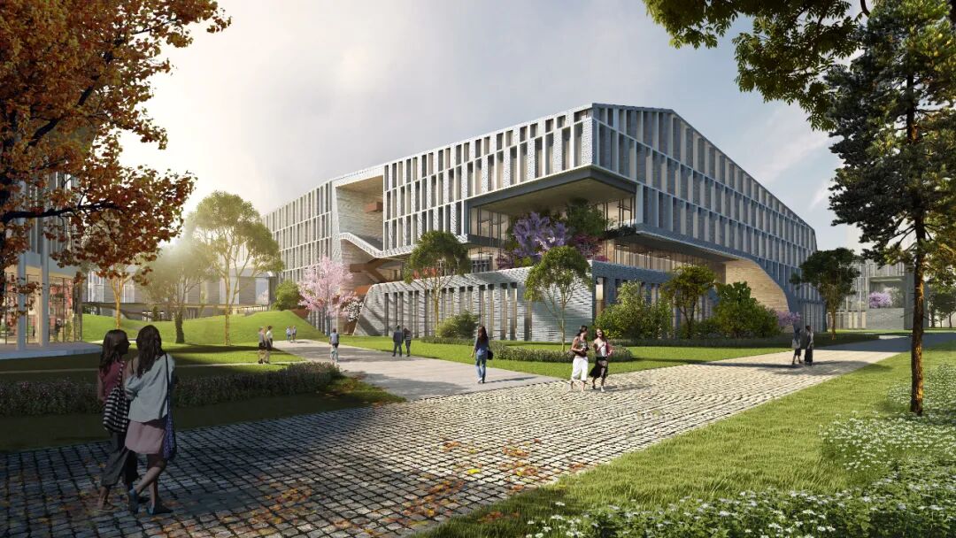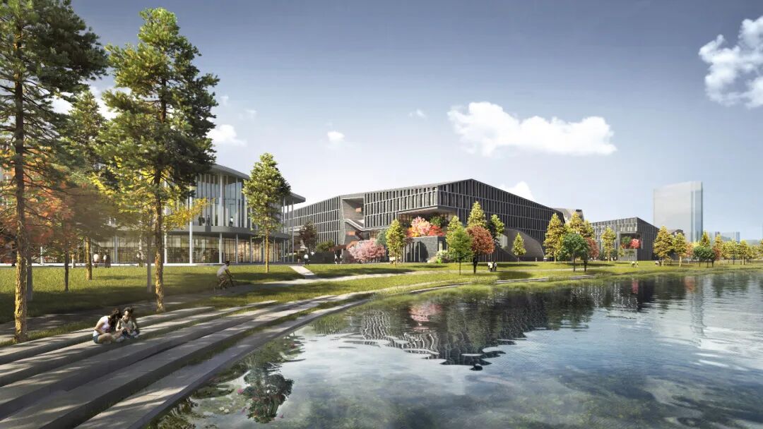 北京理工大学长三角研究生院(嘉兴)选址于浙江省嘉兴秀洲区北部、秀水新城西北,毗邻京杭大运河,距离嘉兴市中心约7km。“三湖两水,二轴四片区”的校园总体规划由同济建筑设计四院负责。