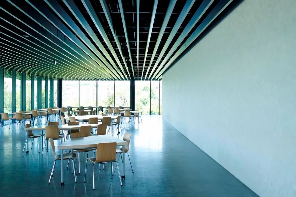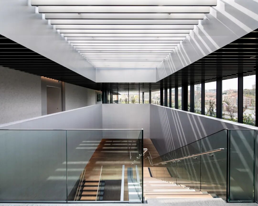 无眩光镜面铝百叶天花板创造了室内外的连续性。为了与“开放”的主题保持一致,铝制百叶天花板与镜面图案的底部设计,创造了室内外空间之间的连续性。柏油路、侧边和电抛光底面创造出反映环境的表面。