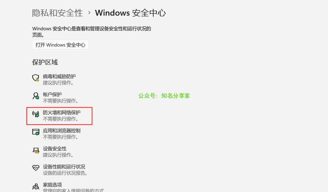 找到设置,点击隐私和安全性,点击windows安全中心。