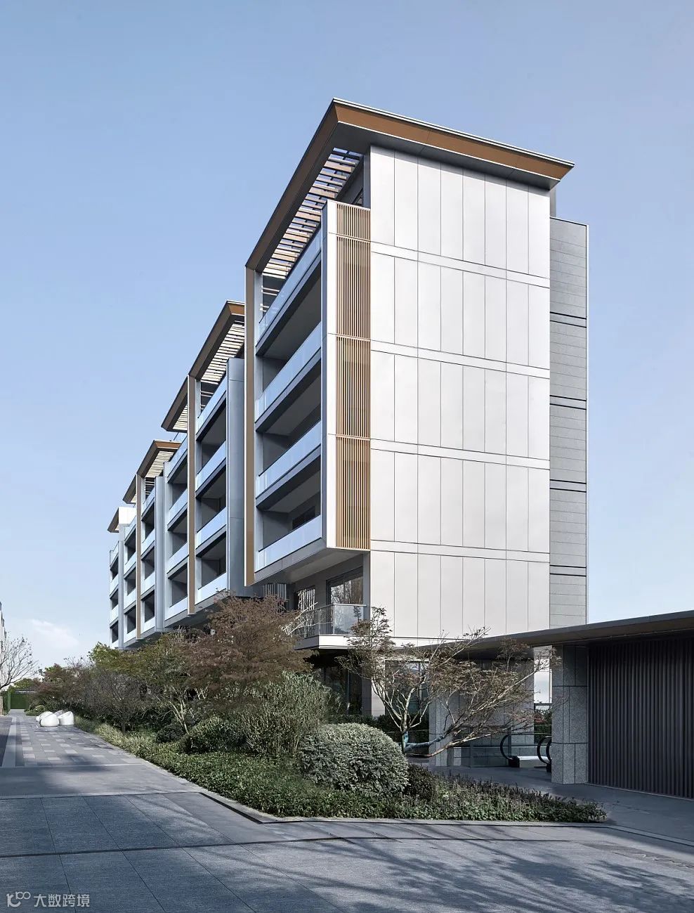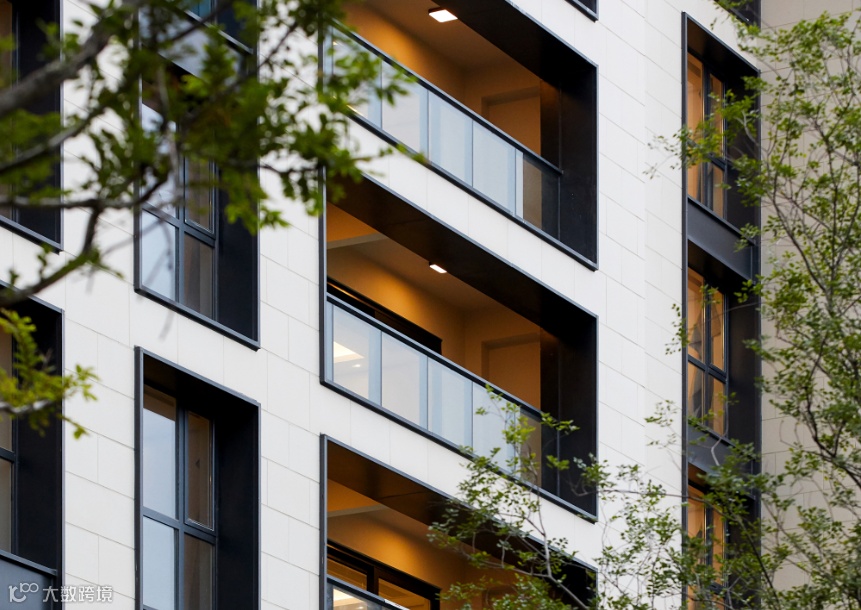 通过滚涂印刷和多次打样,金麟府选用了效果俱佳、可以假乱真的仿石铝单板,石材质感增添了建筑的细节表达和价值感,同时也保证了建筑的整体性。