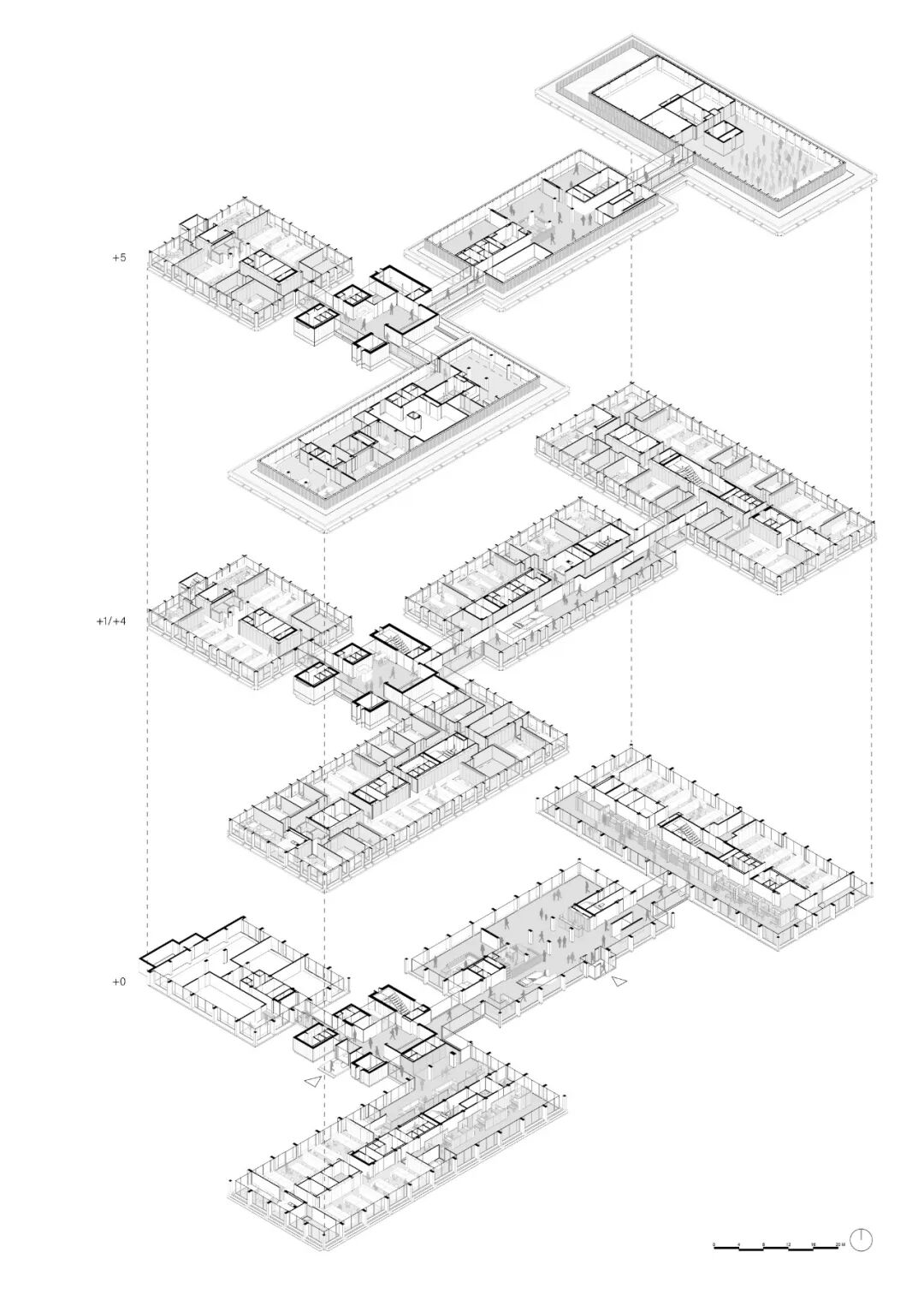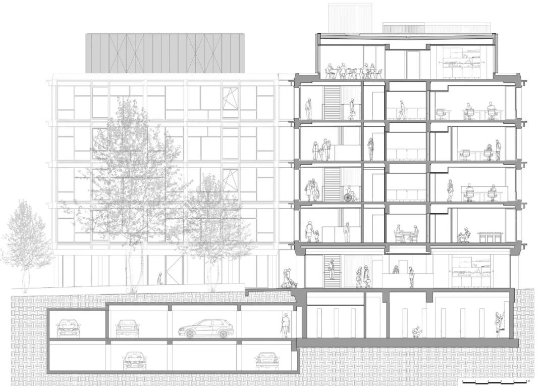 循环建筑。从设计过程的一开始,我们就把这个改造项目看成是社会向循环经济发展的更大变化的一部分。我们首先对现有的建筑和可以再利用的元素进行了广泛的研究。我们还仔细分析了外墙的能量性能,以优化混凝土的外部元素的再利用。