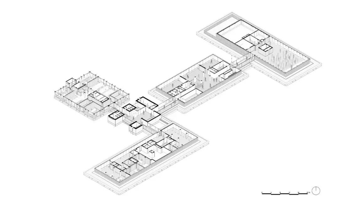 这些地方在视觉上与周围的公共花园相连,并获得充足的自然采光。工作空间的室内设计、家具甚至标识都是由archipelago整体设计的。一个清晰的流通方案确保游客和工作人员可以在一楼和公共区域互动,但保持不同的流动贯穿整个建筑。