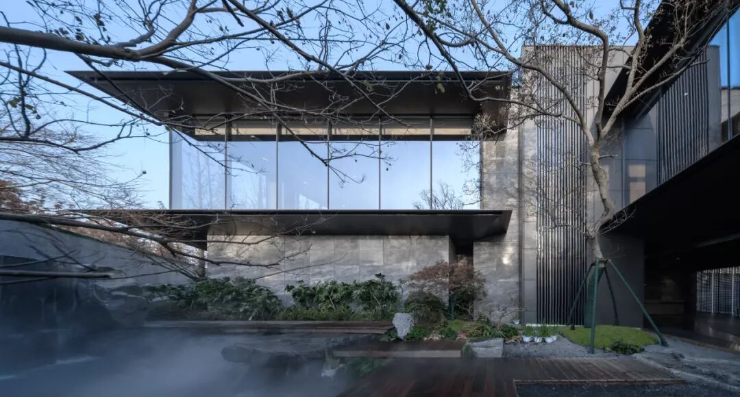 水元素的运用更为山石与植被增添几分柔性之美,水流轻缓、雾气飘然,通过建筑与自然的“光合作用”,找寻诗意的静谧。
