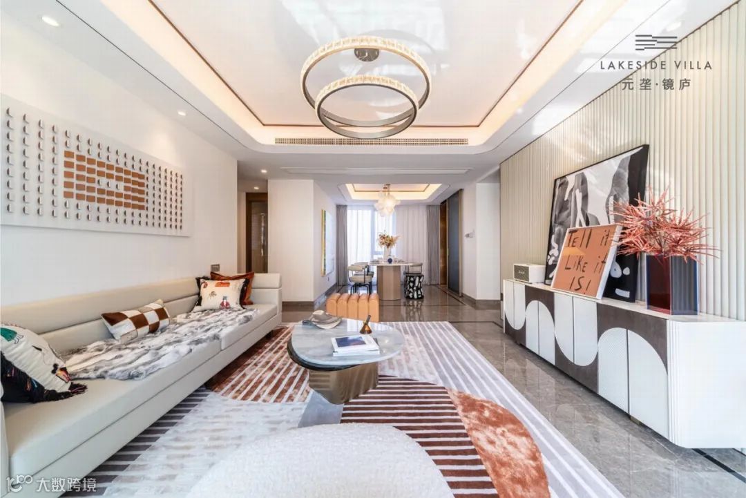元垄·镜庐亦是以湖为灵感,在社区景观的设计上,以湖为原点构建一个完整的社区景观系统,将湖的姿容与气质融入其间,形式丰富的水系景观,在繁华的都市间开启一场浪漫寻归之旅,营造当代大宅生活的居住想象。