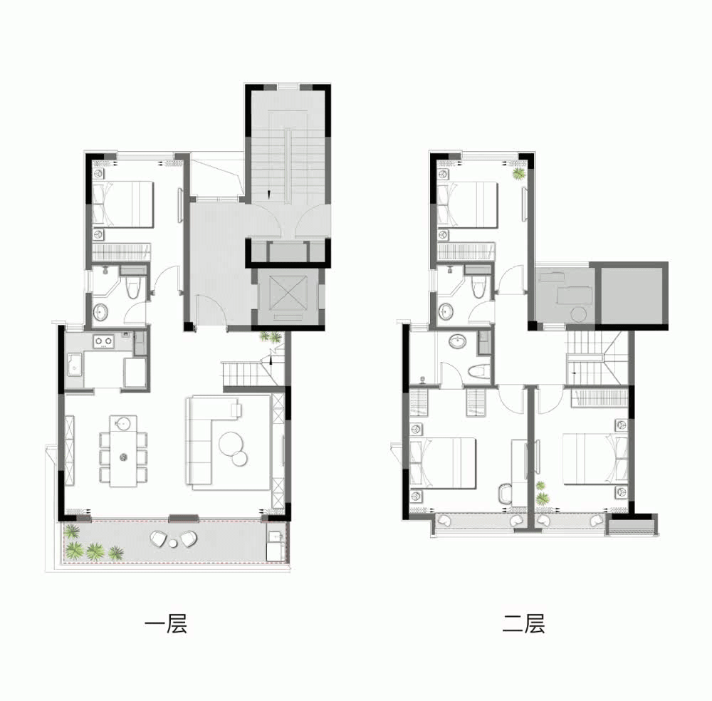 元垄·镜庐滨水叠墅,将对人居的理解融入每一寸空间设计,只为塑造恰到好处的居住格局。不仅通过建筑檐口设计,使得上、中、下三叠户户独立。在居室之内、同一个屋檐下,动静分层设计,也让家人们可在下层公共空间欢悦共生,又可在上层居住区域各自拥有私密领域。