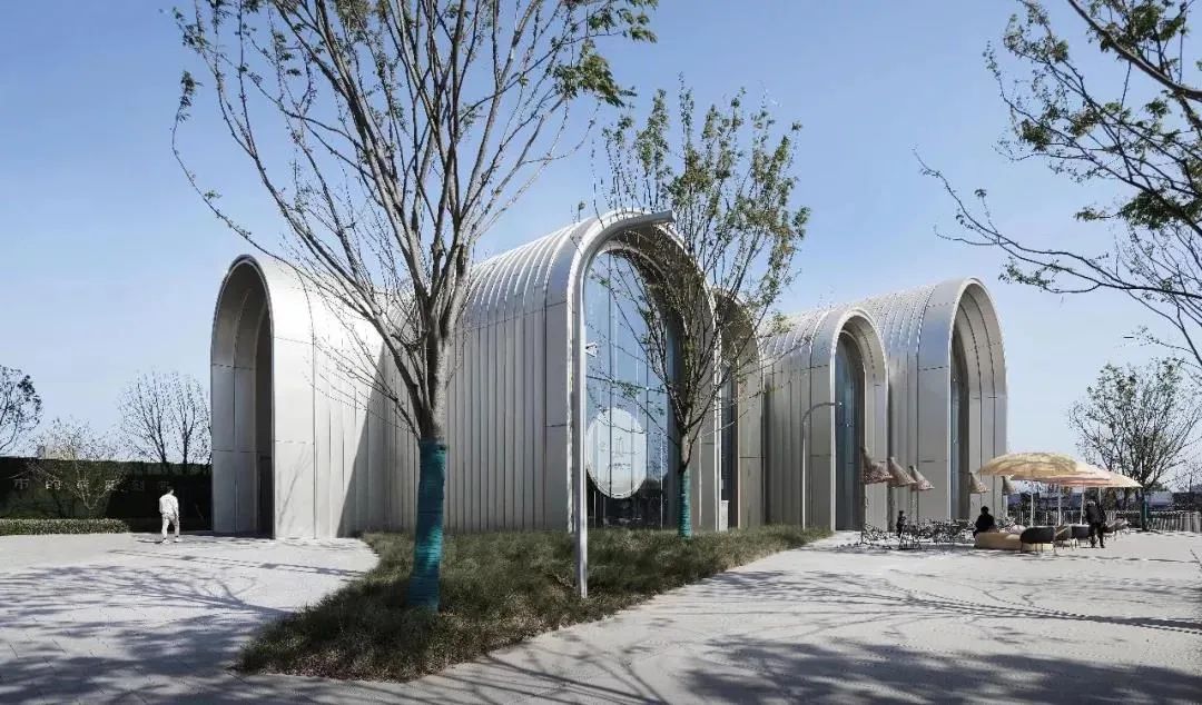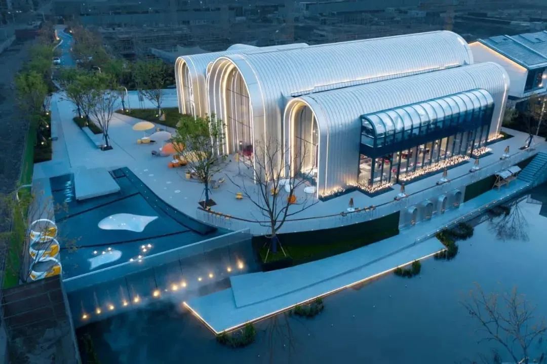 示范区景观面积共计约8000平米,售楼处约1500平米。实景展示占地面积约2400平,售楼处设计灵感来自“渔舟错落的停靠在水岸边”的水乡景象,用极简的现代主义手法转译渔舟形象,链接现代与传统。连续的拱券营造一个艺术圣殿,展示未来社区的生活方式……