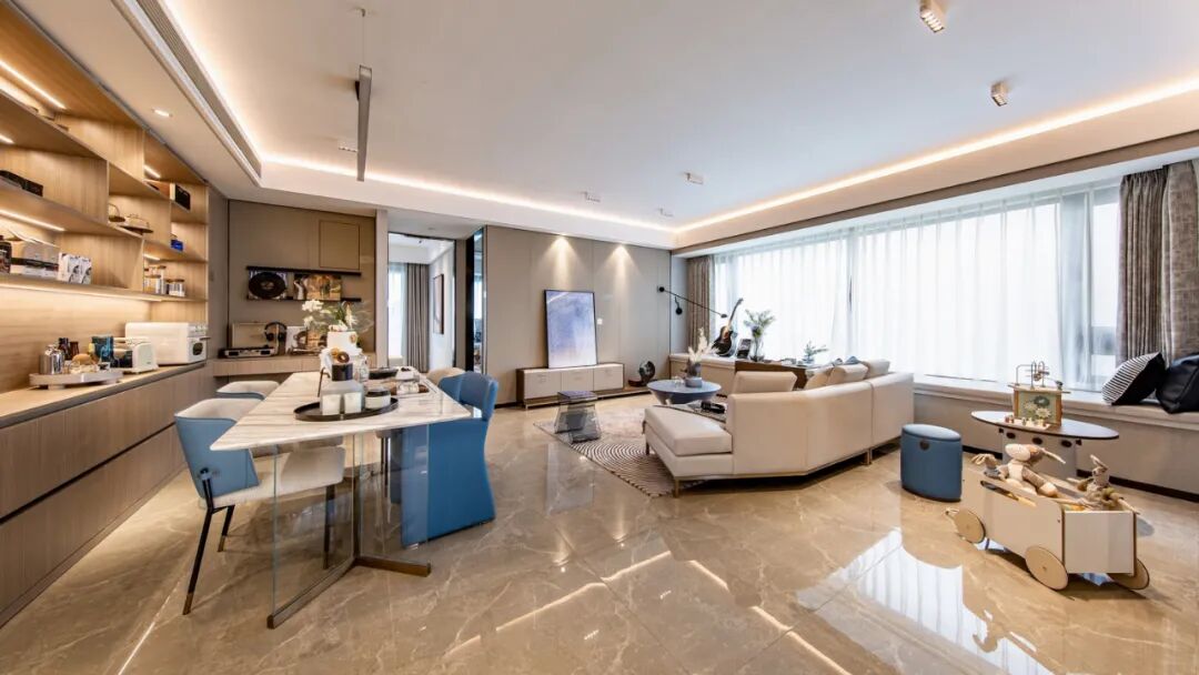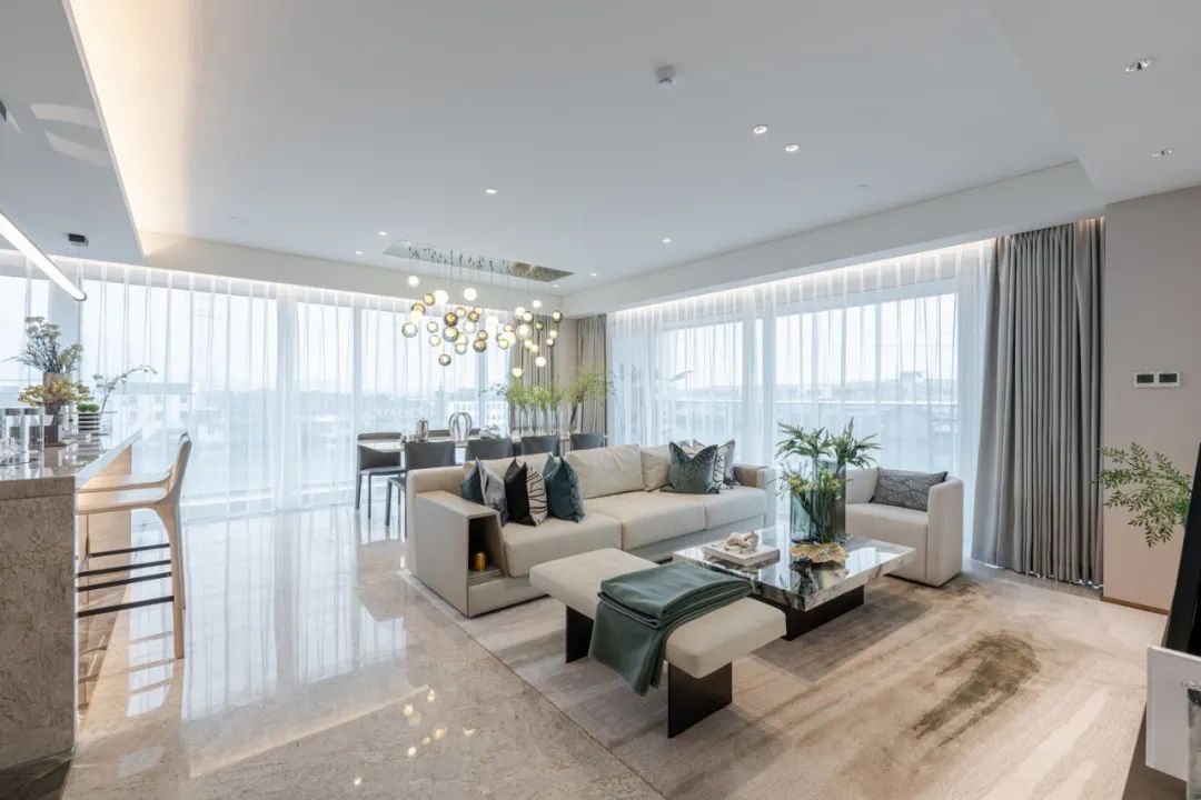 THE ONE,建筑面积约244-390㎡大平层,将美学延续其内,每一座大平层本身就是传奇的存在。全屋精选意大利、土耳其等进口石材,不惜成本考究视觉表达。大金温湿平衡型中央空调、全屋地暖、新风系统等全方位奢配,以细节成就生活高地,契合着当代塔尖的物质与精神需求。