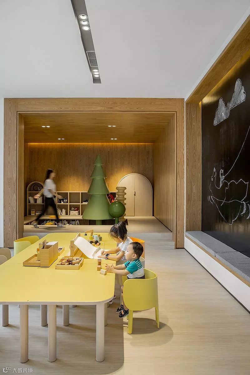 旭辉银盛泰·博观熙岸童梦游乐体验馆,童梦游乐体验馆前期为博观熙岸项目售楼展示区,后期作为社区幼儿园使用,设计最初诉求在于既能实现销售与童梦的相结合,又会随着时间迁移实现空间不同时期功能的转变和延续,让“可持续性设计”更具现实意义。