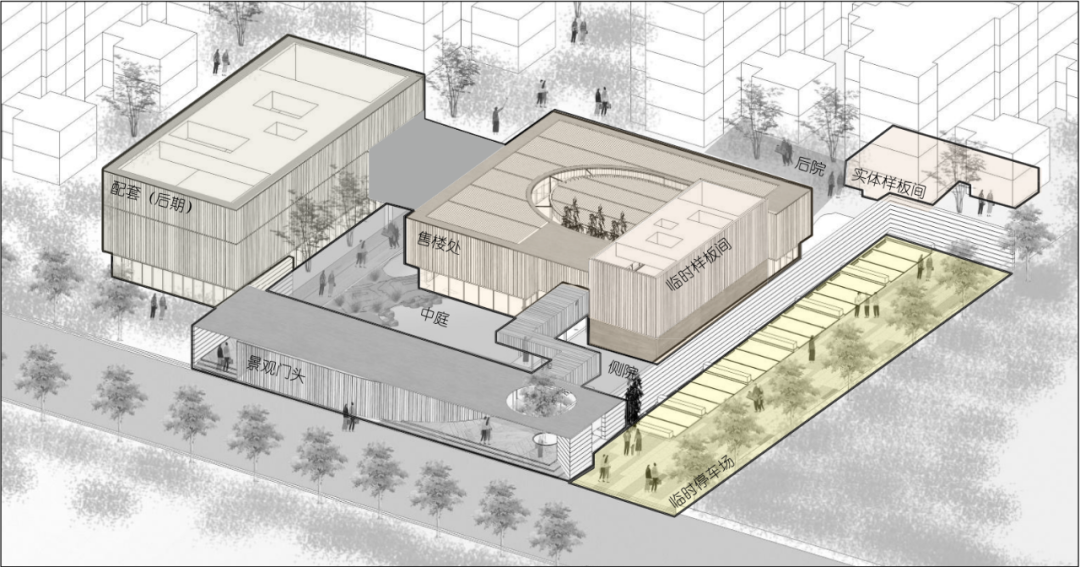 现在单一功能的售楼处已经逐渐过时了,很多售楼处都把名字改为了生活馆、体验馆、美学馆等等,通过复合功能的呈现,引导客户对未来社区生活的向往。