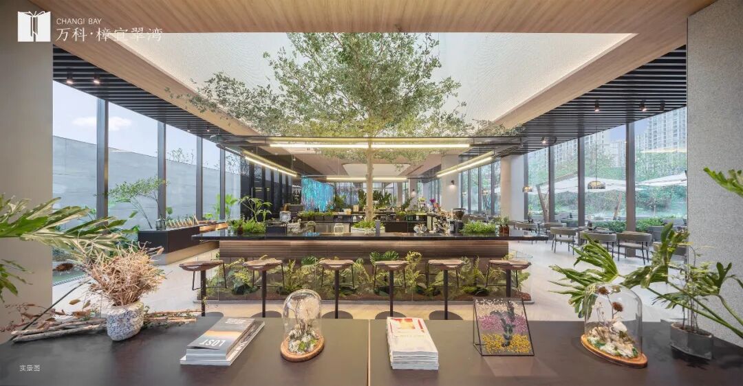 比如万科·樟宜翠湾在售楼空间内开设了CO-Life「花时」餐厅,融合了生活需求与人文自然,以“放慢脚步,花些时间触碰生活温度”为创办理念,打造了提供餐食、咖啡、家庭园艺、潮玩艺术的一站式灵感活力空间。