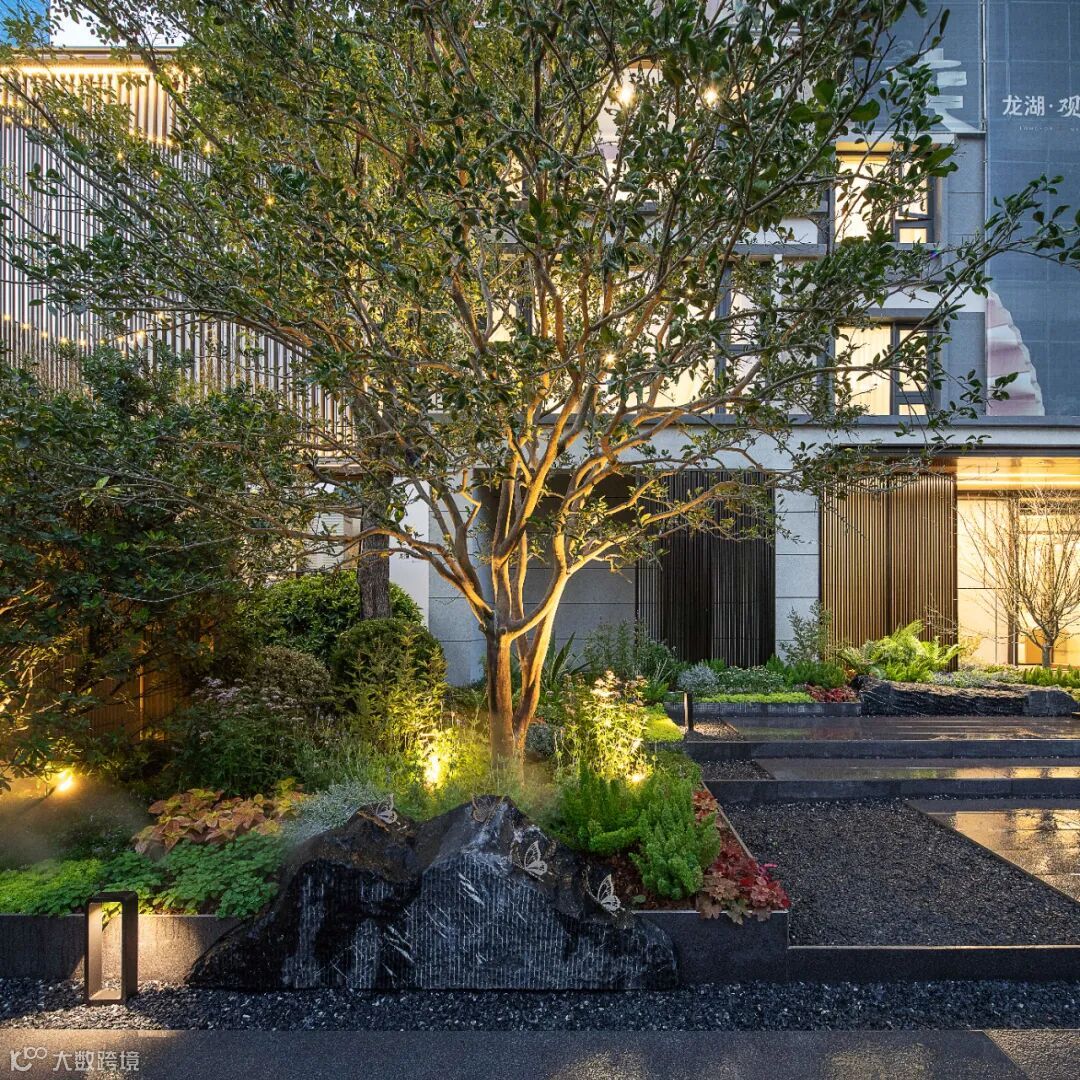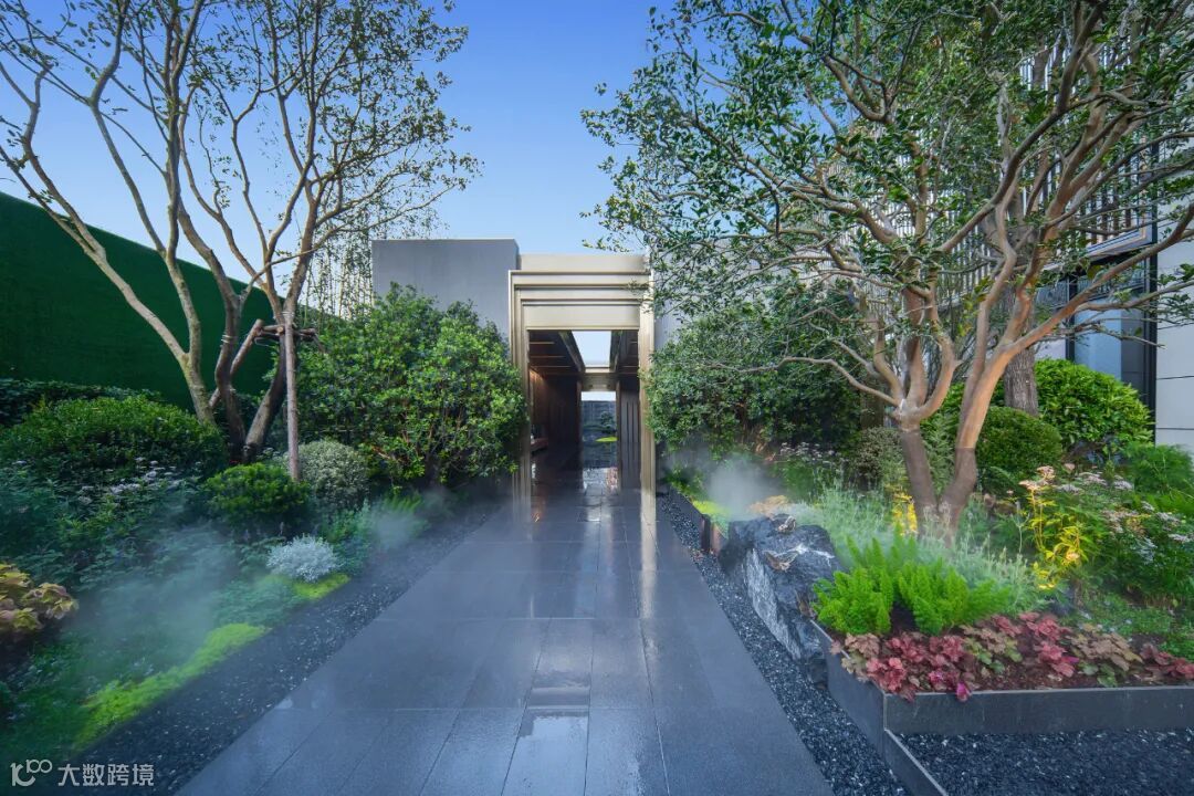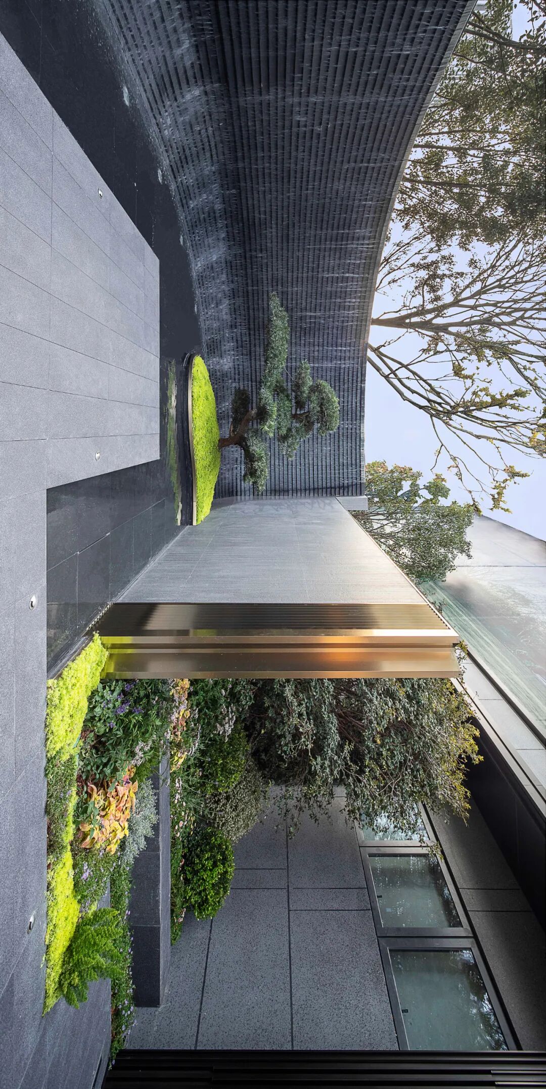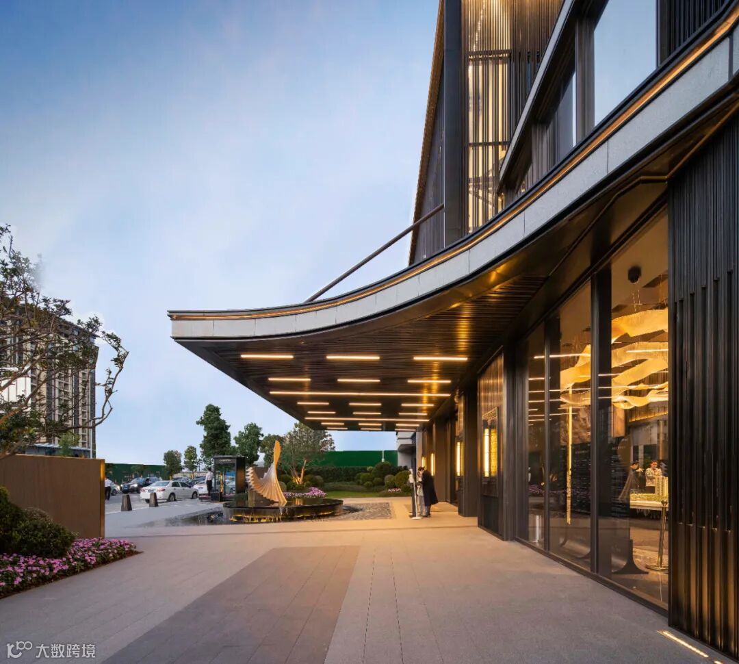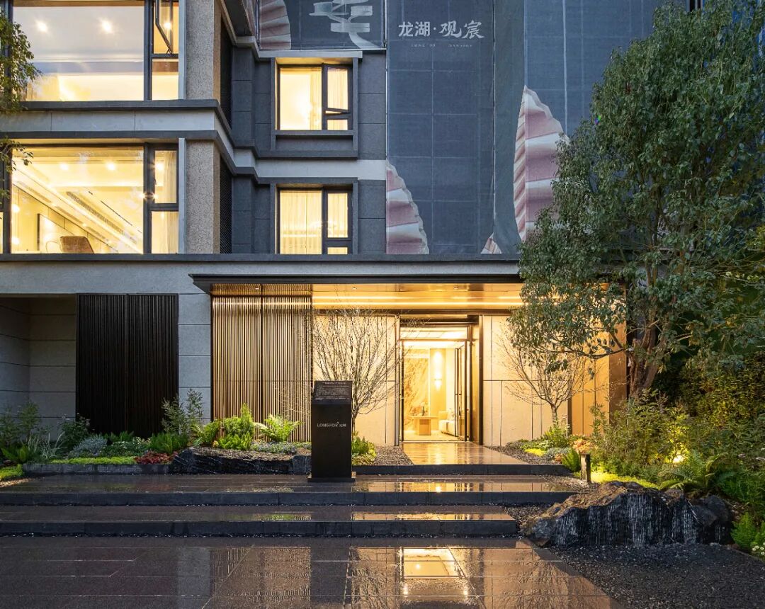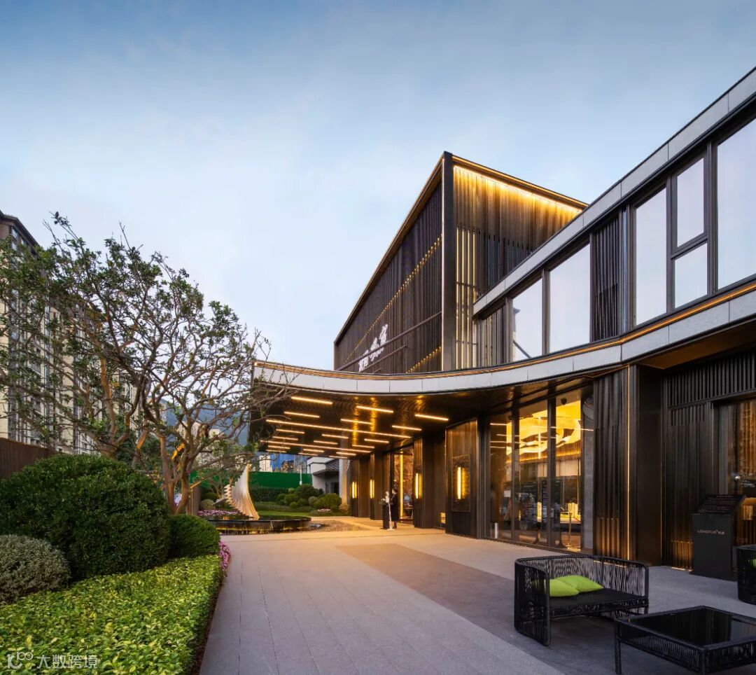 龙湖·观宸社区主入口大堂设计灵感源自于上海宝格丽酒店,结合福州古宅、油纸伞典雅文化底蕴,小区建筑立面采用深色材质,以绿色的自然景物作为衬托,清新脱俗、轻奢典雅。现代主义风格的十足表现力,打造出线条清晰明快、品质感十足的奢华建筑质感。