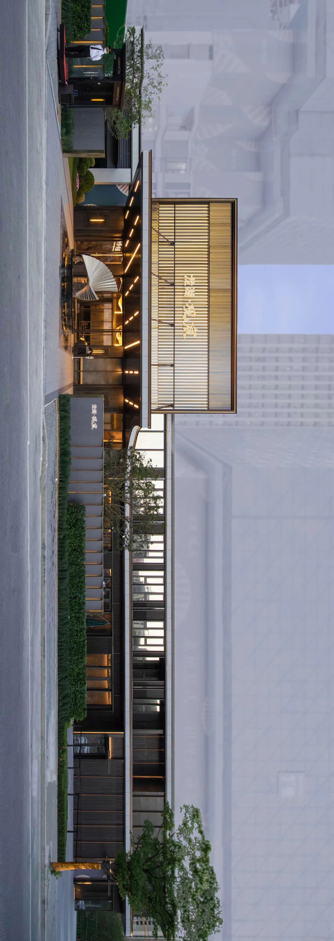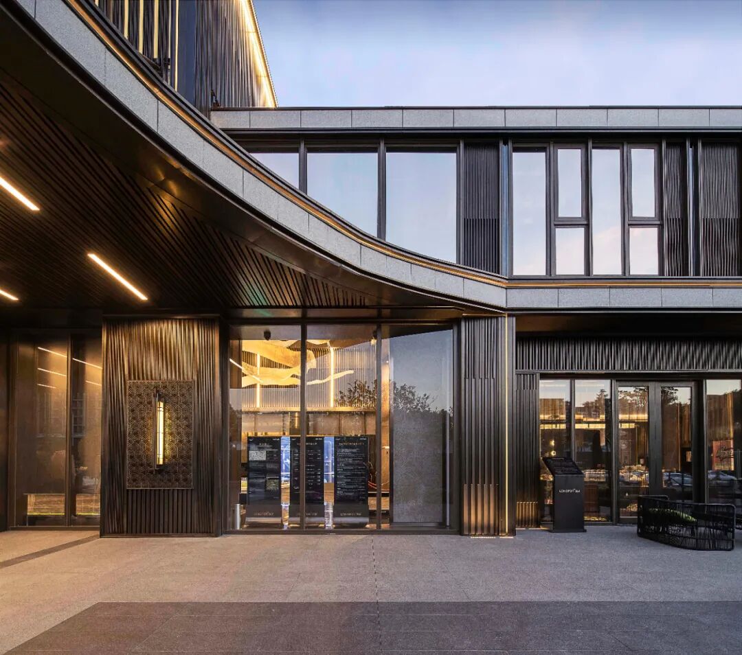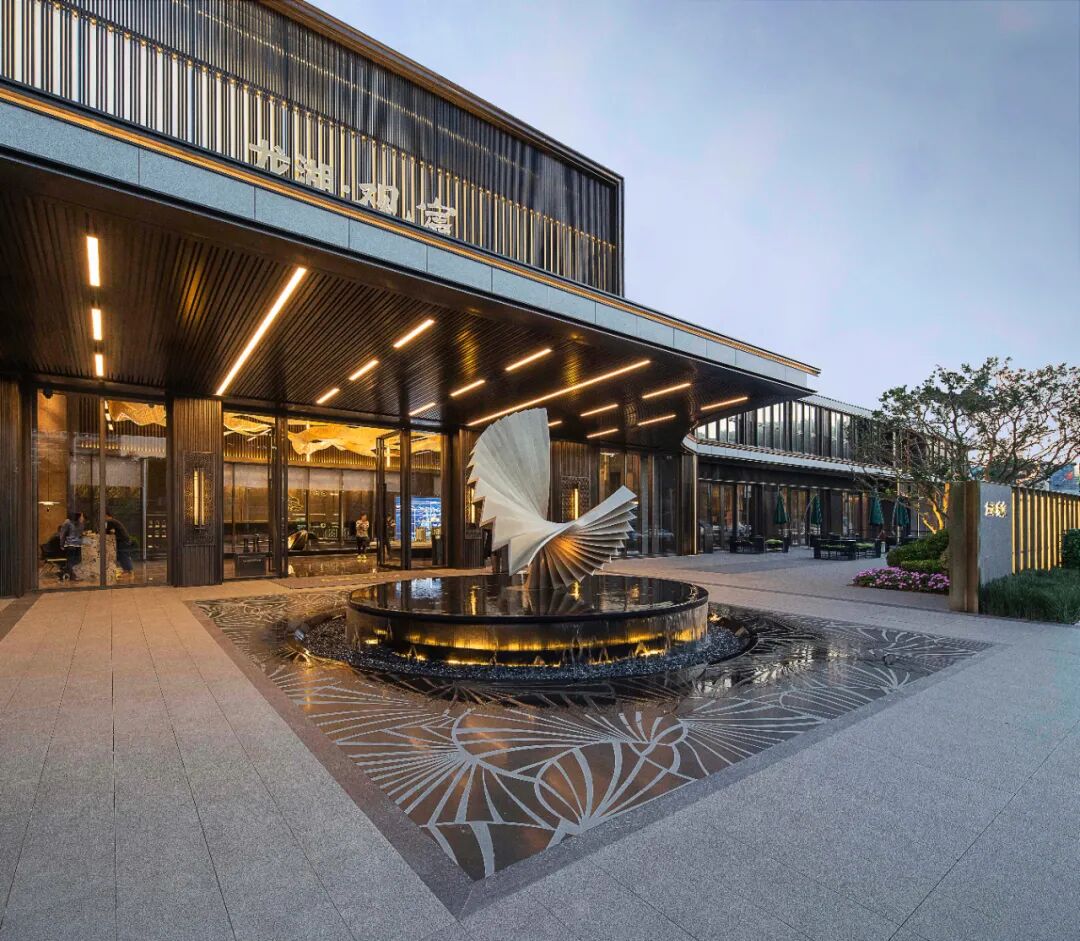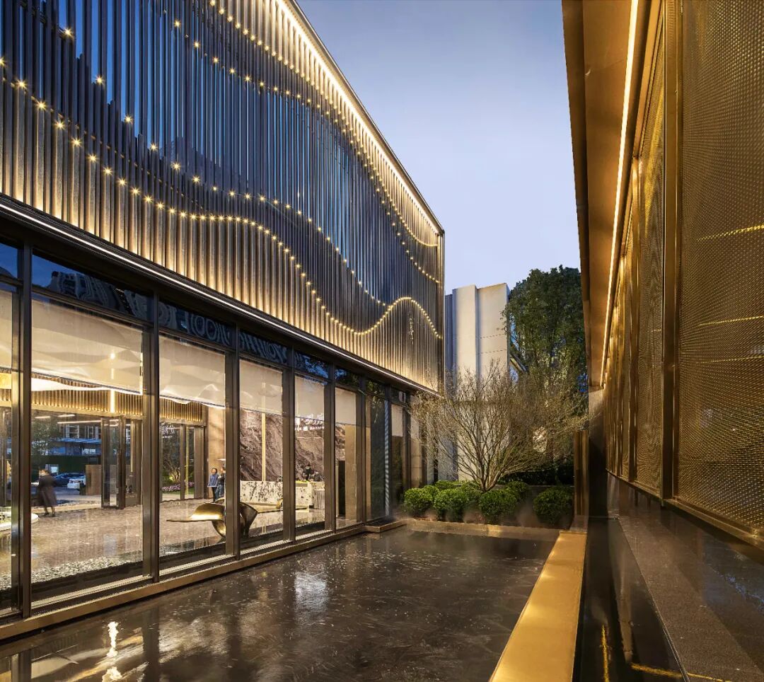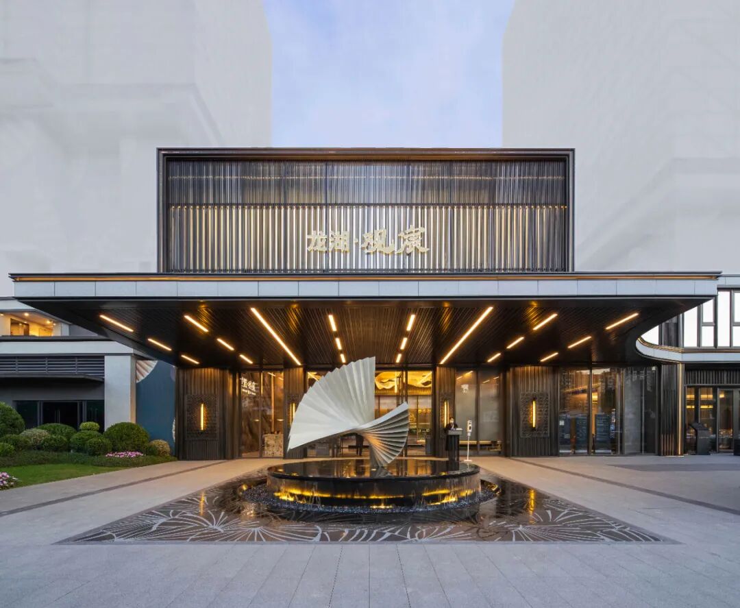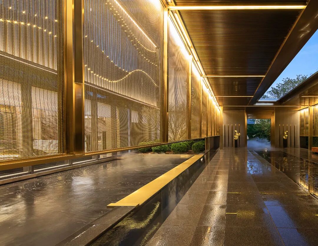 大堂入口精细化的细密格栅与凤尾造型花格相结合,强调现代与精致,同时也寓意凤归福栖,美满平安。凤是象征吉祥的神,代表着吉祥如意,富贵荣华。