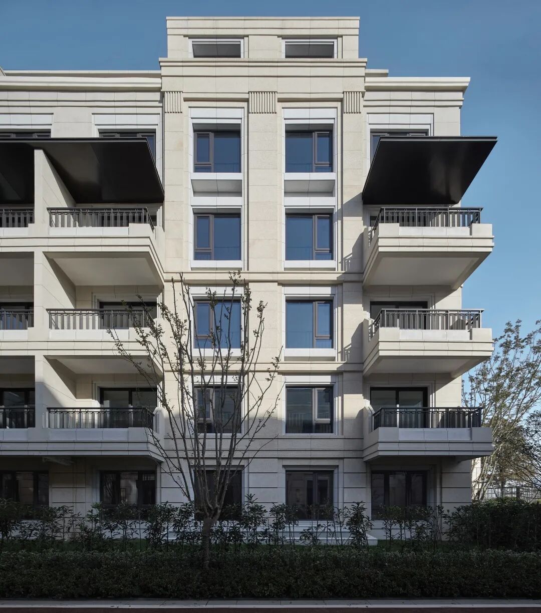 项目用内敛的建筑语言续写具有东方韵味的法式浪漫,糅合秩序之美与自由之态,将古典的韵和现代的影合而为一,构建出落落大方的城市界面。