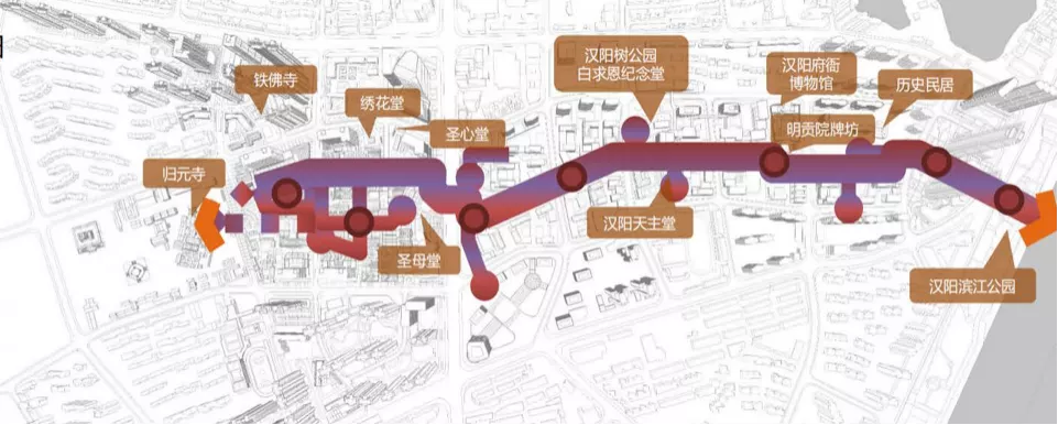 因为项目周边保留着大量荆楚文化与宗教文化的代表建筑,为了保护区域内这些历史文化资源,项目做出巨大经济让步,修缮和复原区域内的文保建筑,并赋予其时代功能,成为城市中的重要艺术、休闲空间。