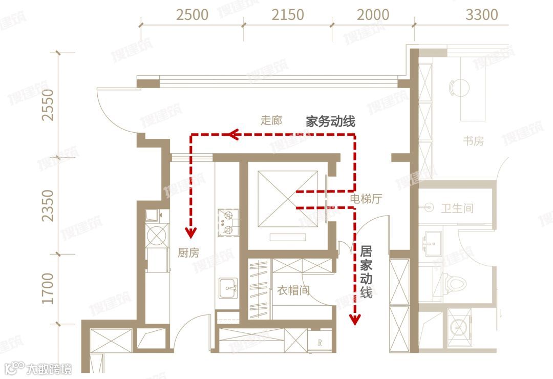 动线其实是由两部分构成的,第一就是指房屋内的各种固定构造物及摆设,另一部分就是指人流、物流的路径。这两者会因为不同的设计而相互影响。
