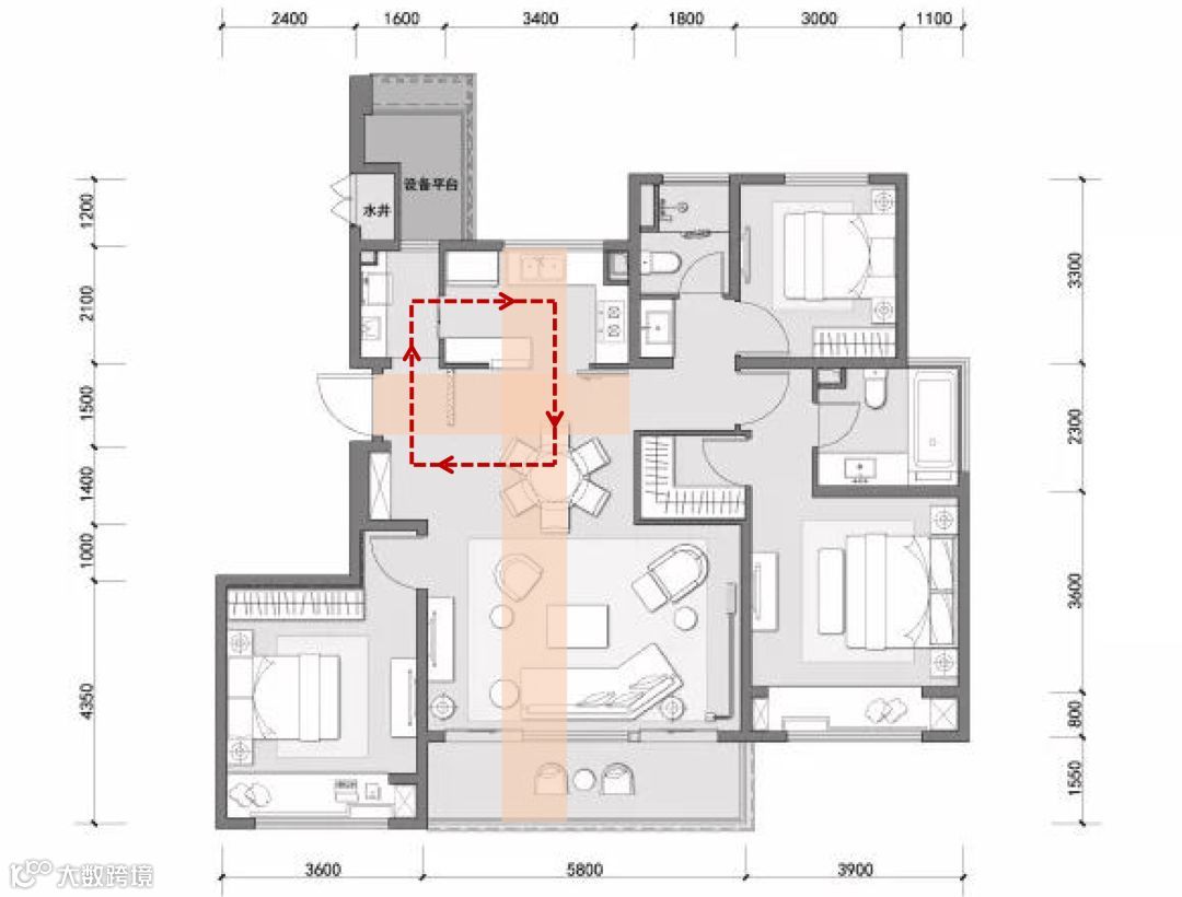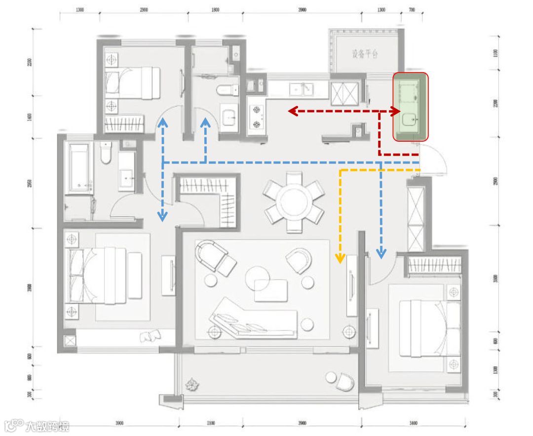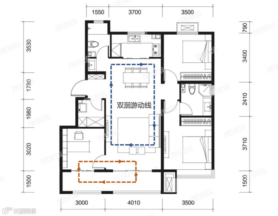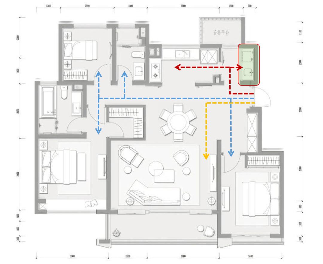 好的户型动线设计能大大提升空间的居住体验,通过合理的动线规划,能有效的减少或避免住户在空间内重复行走、劳动。