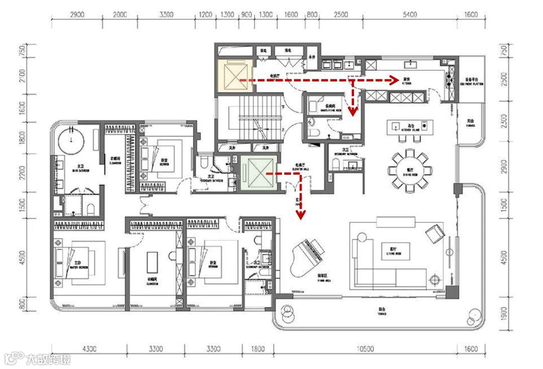 说起家务动线,在豪宅面积段,就不需要主人做家务了,就会出现主仆动线。
