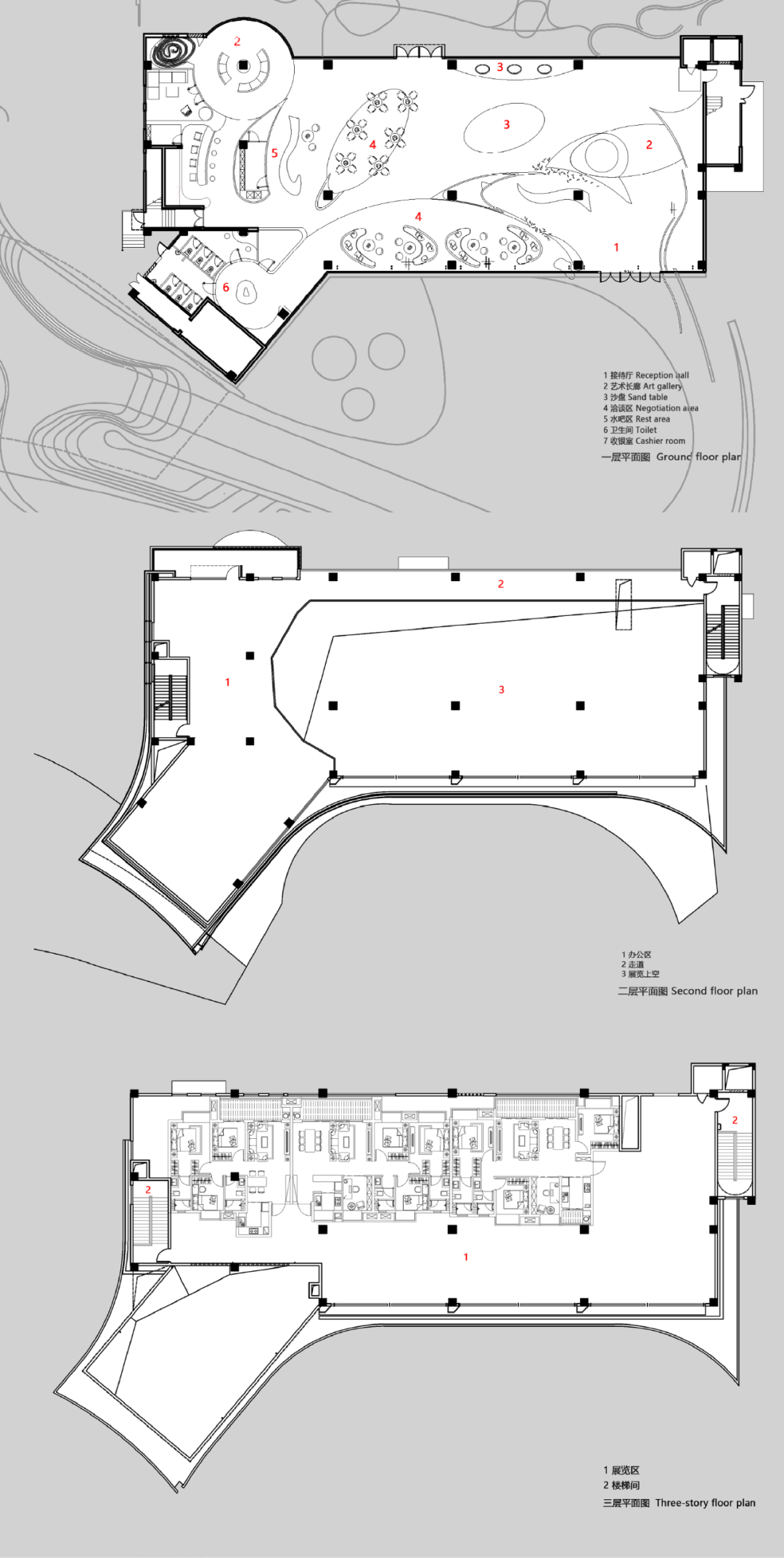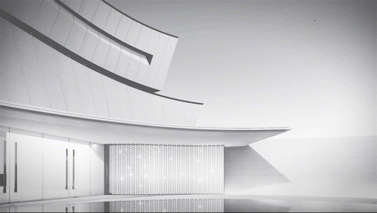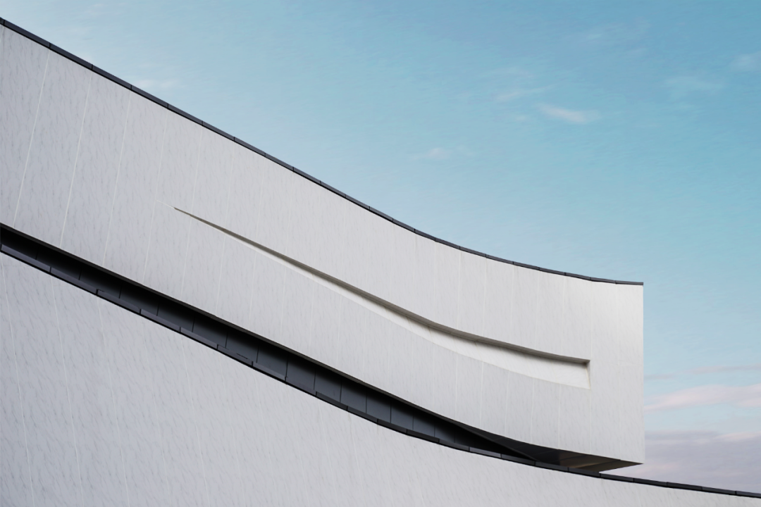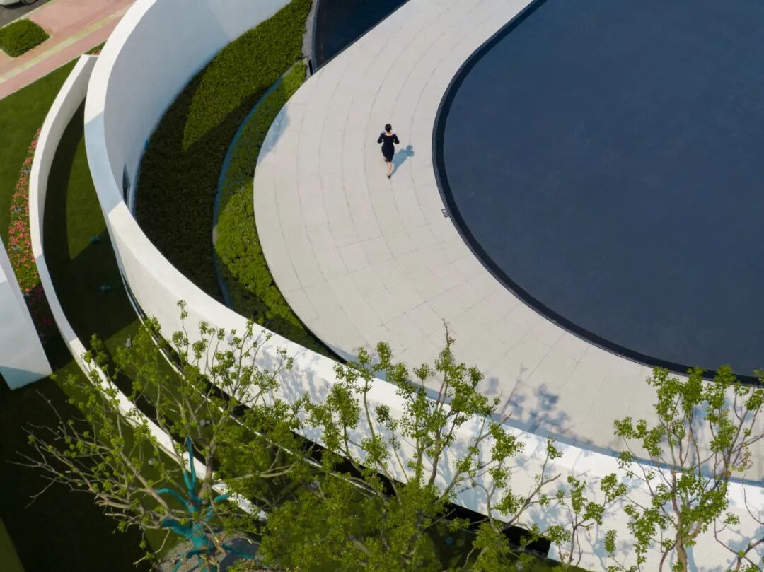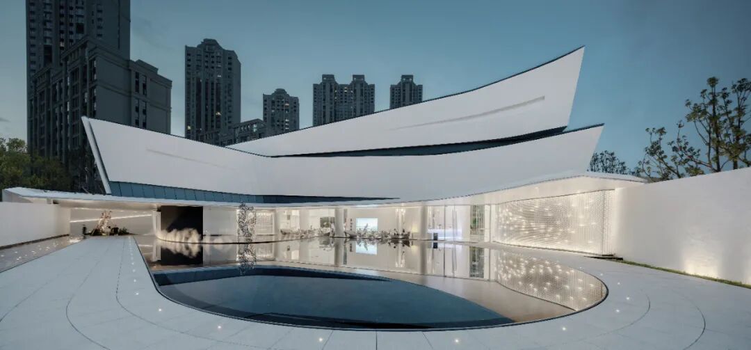 在主材料的选择上,我们结合了米白色铝复合板、双钢化LOW-E中空超白玻璃与深灰色铝复合板,纯粹的干净搭配流动的自然,不需过多的装饰,不用繁复的色彩,建筑空间与感官体验相互作用,参观者能更完整地感知自我的情绪与温度。