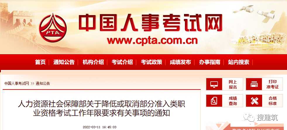 继2021年12月,人力资源和社会保障部发布《关于部分准入类职业资格考试工作年限调整方案公示》,明确了一二级注册建筑设计师、注册城乡规划师、一级建造师、一级造价工程师等14项准入类职业资格考试的降低调整方案后(点击我回看)