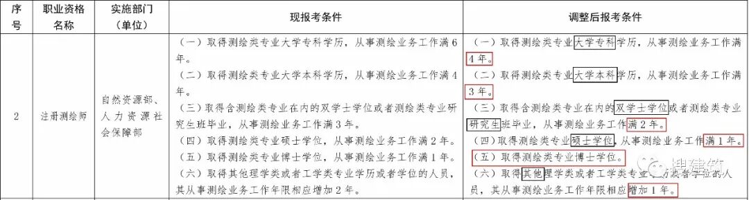 (二)取得测绘类专业大学本科学历,从事测绘业务工作满3 年。(原4年)