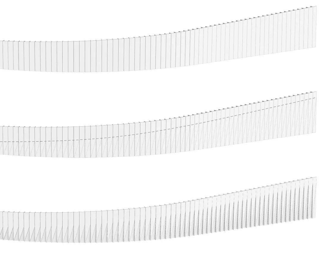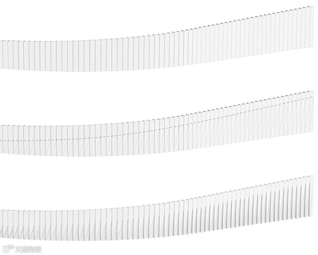 两条曲线各自清晰,又相互交织,形成“人”字形态。通过上下形体与材料的反差,塑造强烈的视觉冲击力与独特的形体特征,为城市增添一抹来自未来的色彩。