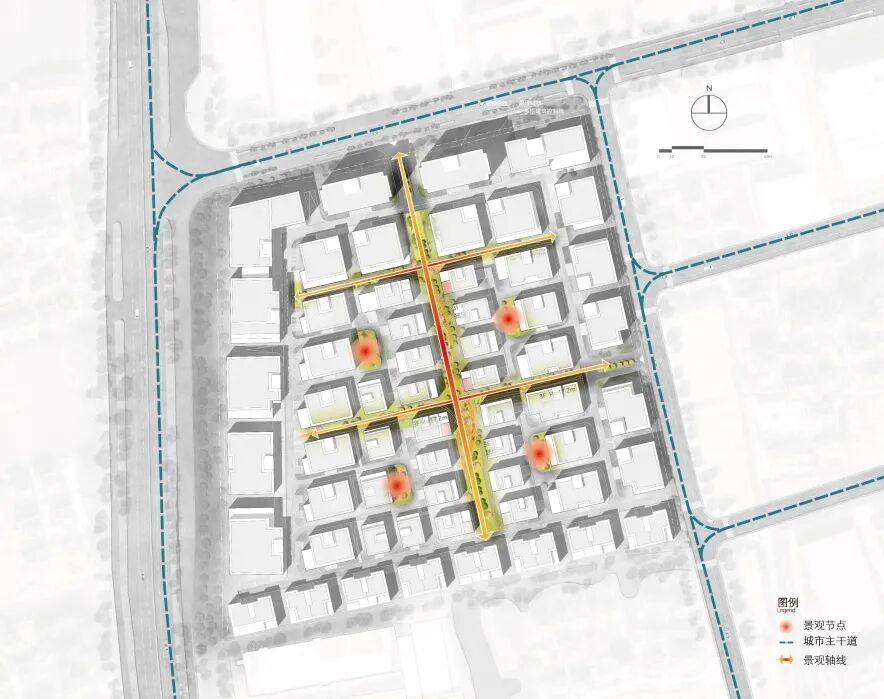 本案的产品模块、密度大小、道路尺度等都与传统的“里坊制”、“街坊制”相契合。该布局模式形成较明确的功能分区及共享交流空间,恰如里坊制里的“东市、西市”。