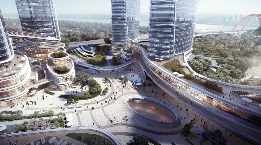 得天独厚的区位条件,使自然景观资源成为该项目最为独特的优势。除了地上打造的生态绿廊公园、情景商业街等城市界面以及与地下轨交接驳的TOD体系,超五星豪华酒店及服务式公寓、豪华大平层公寓、LOFT公寓形成的塔楼成为该项目的标志性语言,重塑了城市的天际线。