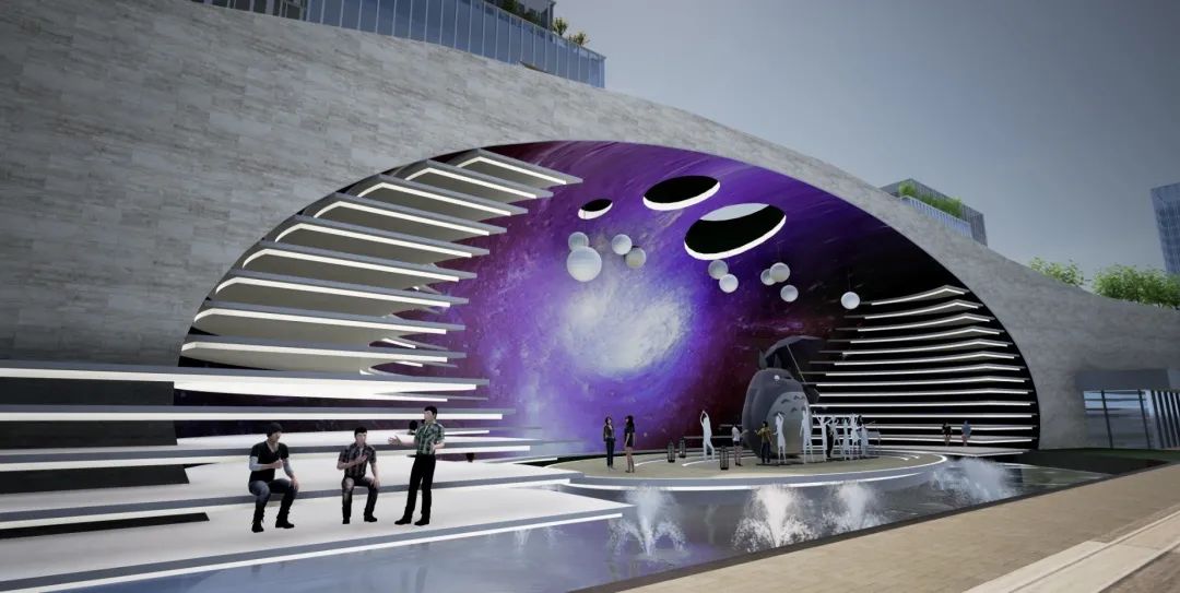 周边住宅区众多,拥有品质感的室外空间在项目所在区域亦为稀缺资源。本案以室外公共空间的营造与链接为出发点,除了街角的四个主要入口节点广场以外,分别以“城市秀场,网红食界,潮流广场,童话世界”为主题,重点打造四个景观下沉广场,为网红相关活动的举办提供完善的室内以及室外的空间条件。