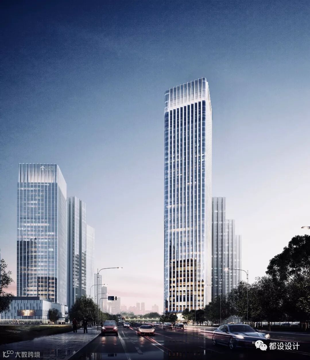 佛山万科天空之城由一栋240m超高层办公楼,一栋150m高层五星级酒店及6栋150m高级公寓组成。塔楼采用全玻璃幕墙系统,实现挺拔、通透的立面效果。材料以双层low-e中空玻璃、浅色浅灰色铝单板,深灰色型材等为主。