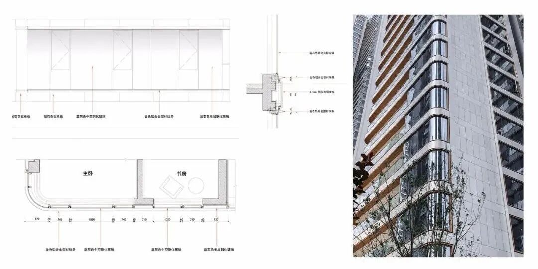 三层双中空low-e玻璃(左图) 和铝包木做法(右图)