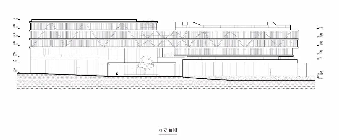 为了延续西侧城市公园景观并实现无边景观的设想,方案选择通过底层多个由钢结构的核心筒支撑的实体体块将主楼首层架空,以在城市空间界面上消解建筑体量及整体性并营造贯通的视线关系。