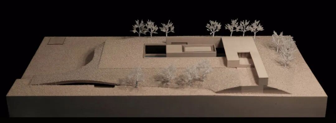 建筑沿庭院处做了大量的底层架空和屋顶覆土,以尽可能将自然光线与景观引入到建筑空间当中。覆土建筑上的曲面种植屋面,软化了建筑与景观的交接面,通过空间的流动,景观的流动,人员的流动,建筑不再是孤立的存在与单纯的自我表达,而是融入自然之中,带来了空间与景观相互渗透影响的体验。