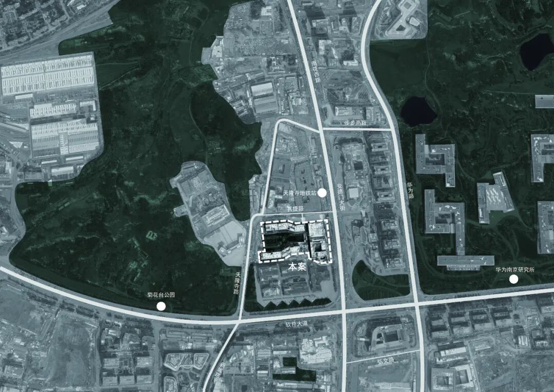 南京丰盛五季凯悦臻选酒店位于南京市雨花台区安德门大街和软件大道交汇口,地铁天隆寺站南侧。西邻由古浡泥国王墓、天隆寺和菊花台公园组成的城市绿地公园,东临安德门大街以及雨花客厅等办公园区,南北两侧为办公商业综合体。项目基地约为30241㎡,总建筑面积为77700㎡。