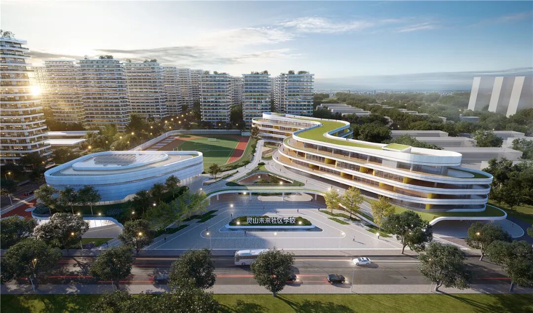 在秀丽盎然的灵山脚下,思序携手上海中建参与了未来社区学校的建筑概念方案设计,这是一所包含小学和初中的九年一贯制学校。