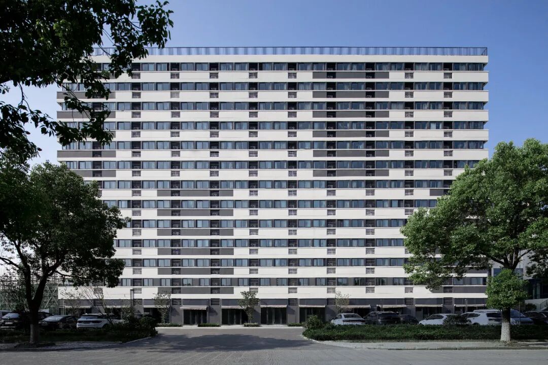 项目毗邻G60科创走廊产业带,位于国家级松江经济开发区东部园区内,该区域产业聚集度高、产业人口住宿需求大。标准化、规模化及高品质的新建租赁社区就是在此急迫需求的背景下产生。住区内分为5栋建筑,其中1-4号楼为租赁住宅,5号楼为配套社区商业。社区可为1300多户提供租赁住宿,自2021年4月投入运营以来,入住率达到9成。