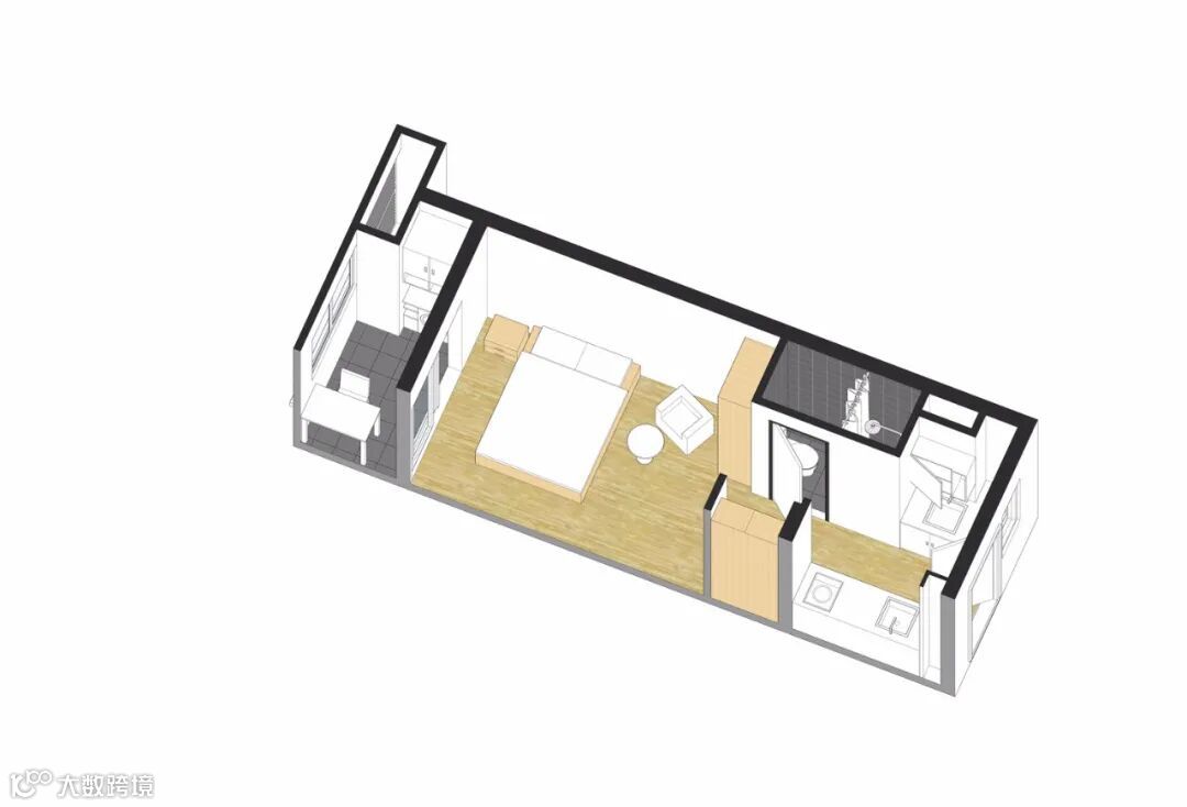 宽敞是小户型不可求的,而有趣则可以争取。在“一人居”的模式下,一个标准单元包括了U型厨房、独立卫浴、封闭阳台、开放客厅、卧室和可变柜体,可以高质量地满足年轻人对于生活中仪式感的需求,做饭、读书、聚会、观影等都能以舒适的方式展开。