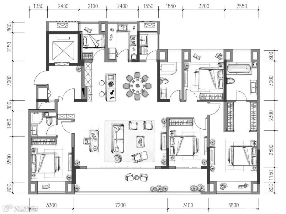 今天,搜建筑在全国各大楼盘、几百个户型中,千挑万选了一批惊艳的五开间户型,都是大面宽、短进深、视野开阔的网红产品,总结其特点,希望对大家有所启发。