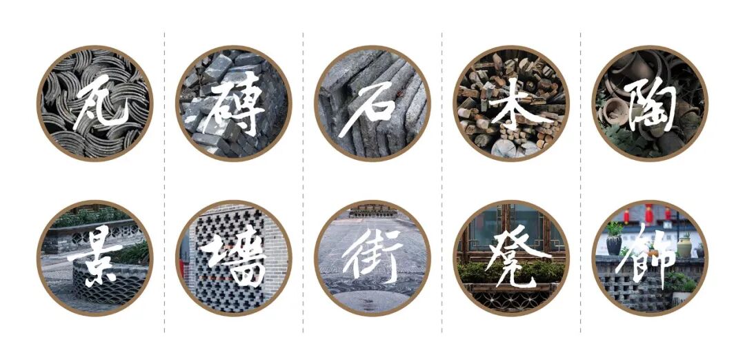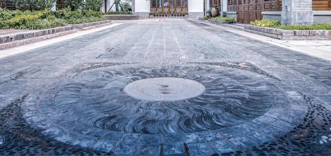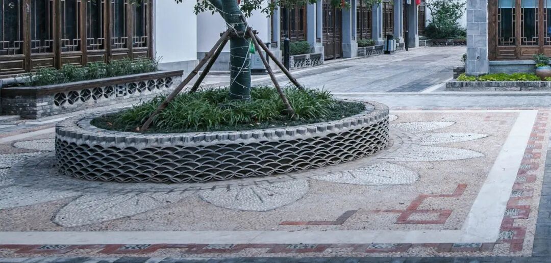 将废弃瓦片、石板、青砖等组成独特的地面铺装,以此焕发新的文化记忆。
