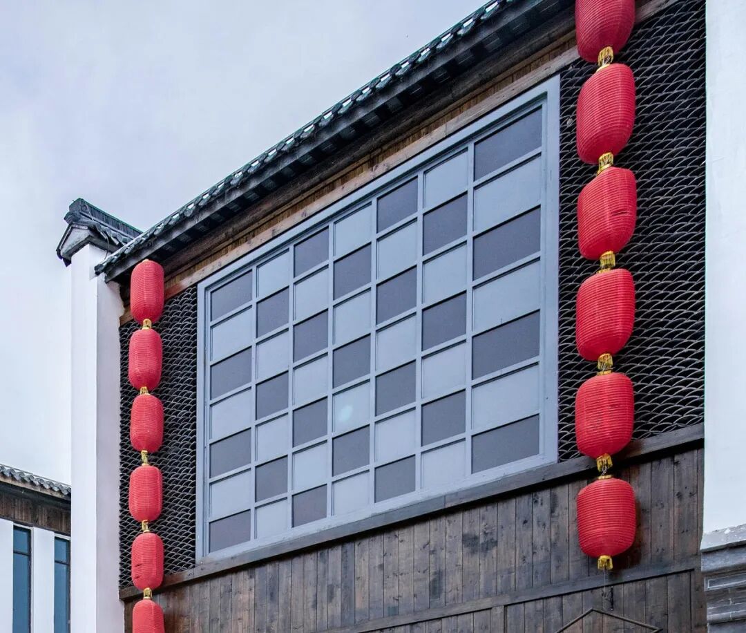 在适当的位置,用木与玻璃还原原汁原味的传统花格窗样式,在建造上不受传统木结构的约束,形成了更多的立面建构可能。