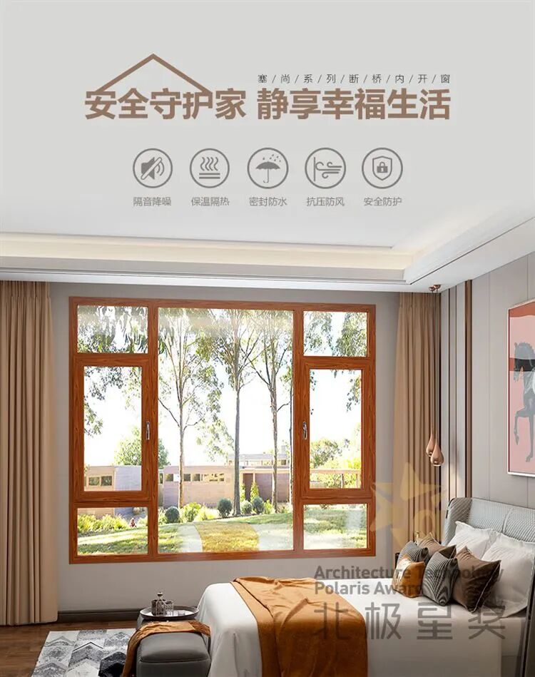通过国家实验室检测,其保温性能K值达到了被动式门窗要求的1.0 W/(㎡·K)。但铝材消耗量每平米减少5KG左右。相对主流产品,节约型材30%左右,每平米窗户铝材生产产生的碳排放可减少约84Kg。