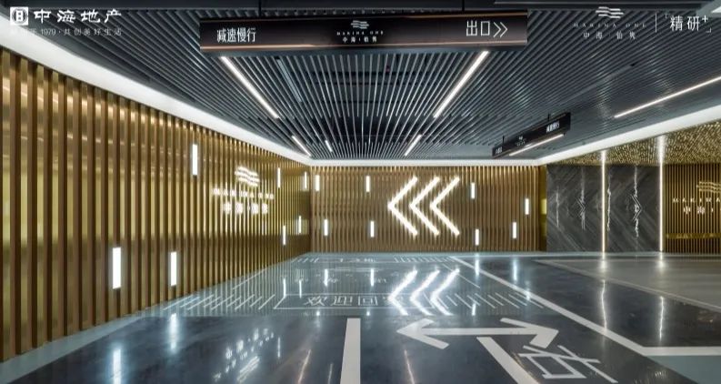 车位背面采用大面积瓷砖、装饰条,整体非常气派,流转艺术的气韵。地面用灰色环氧进行铺装,耐磨、持久、寿命长。