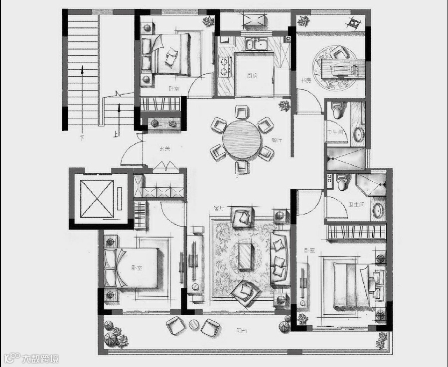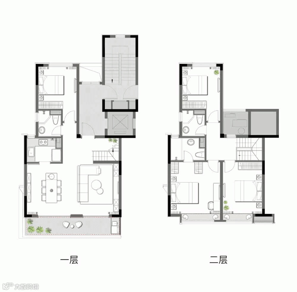 舒朗下叠,双层空间宽敞明亮,奢适的餐客一体大方厅,4+1式空间设计,从容宽境,匹配主人的私密与尊荣。