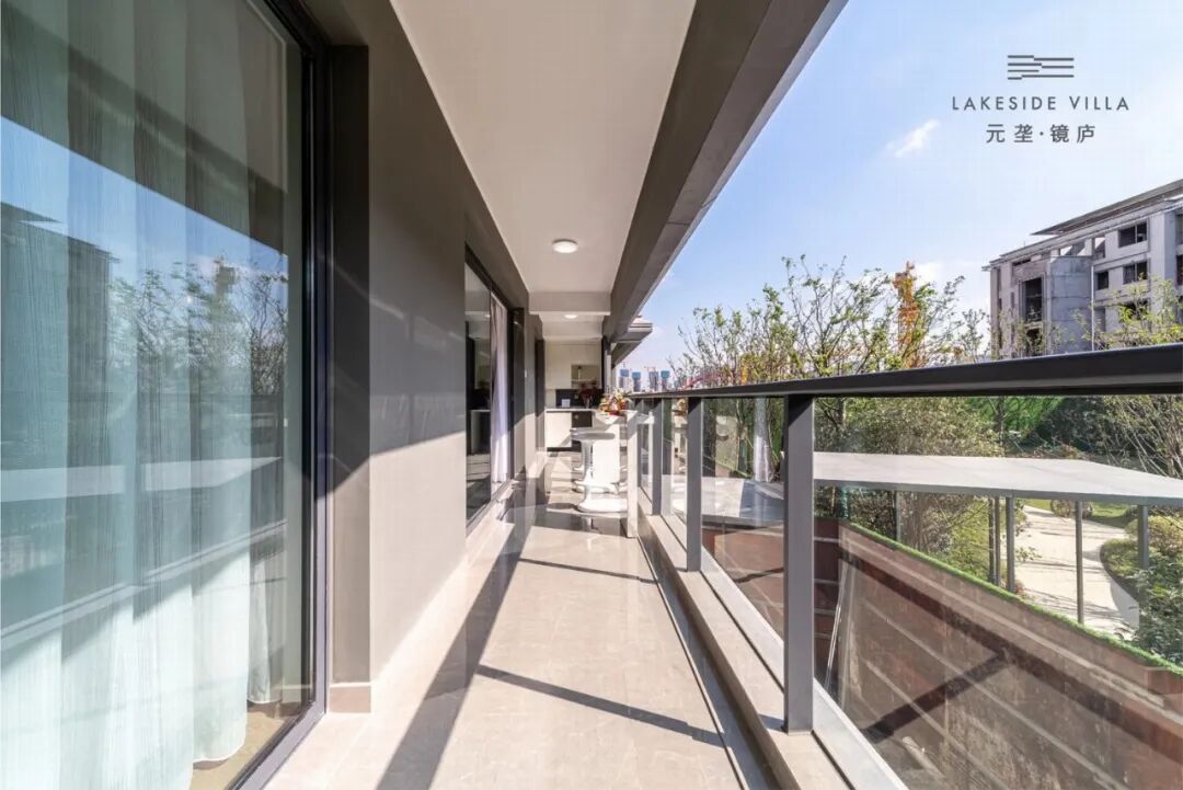 元垄·镜庐在景观设计上,以现代元素为主,融入本土文化,采用“一轴·两环·三礼八庭”的层次结构与布局,同时延续湖居的诗意生活气质。